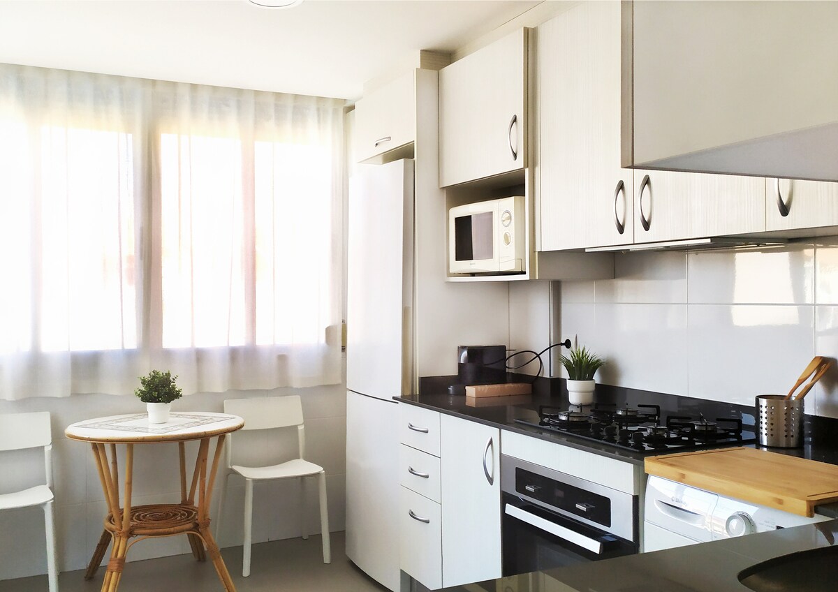 🧑🍼 Es befindet sich NICHT im Erdgeschoss. Es ist ein 115 m2 großes HAUS. Komfortabel mit geräumigen Zimmern, viel natürlichem Licht und sonnig🌞. 3 Schlafzimmer, sehr komfortable Betten erster Qualität, schöne Küche mit valencianischen Fliesen, 2 Badezimmer mit Dusche, großes Wohnzimmer mit weitem Blick nach draußen, zwei Sofas, Esstisch, 55-Zoll-UHD-TV mit Internetanschluss und ausgezeichnetem WLAN-Signal. Voll ausgestattet. Falls erforderlich, ein Kinderbett, Hochstuhl und Babywanne.