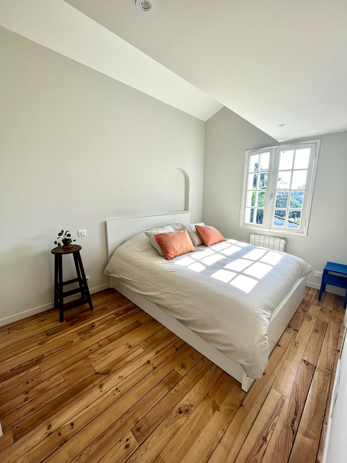 Ich würde mich freuen, Sie in meiner hellen Wohnung im obersten Stockwerk eines baskischen Hauses begrüßen zu dürfen. Diese Wohnung verfügt über einen Balkon. Tolle Leistungen: - 3 Schlafzimmer, eines davon im Zwischengeschoss. 2 Queen-Size-Betten/1 Doppelbett - Das Wohnzimmer ist zur Einbauküche hin offen: Lacanche-Herd, Kaffeemaschine, Geschirrspüler, Waschmaschine - 1 Bad direkt von den Schlafzimmern zugänglich große Dusche von 160 cm, separates WC. - Klimaanlage im Wohnzimmer