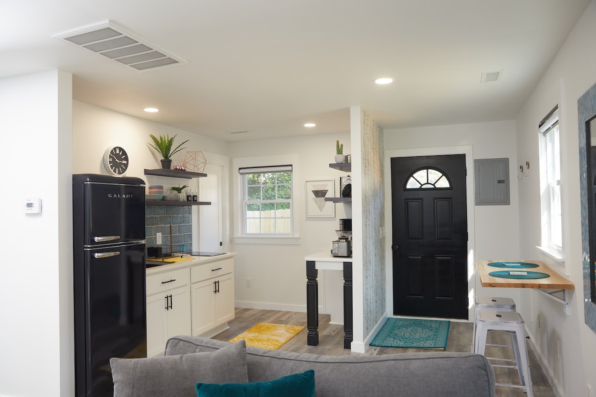 Dieses ruhige und friedliche Studio befindet sich in Starmount. Das beruhigende Interieur ist perfekt zum Entspannen und Auftanken. Dieses Loft verfügt über ein Kingsize-Bett, eine Küchenzeile, WLAN und einen 47-Zoll-Flachbildfernseher, den du entweder im Bett oder auf dem Sofa ansehen kannst. Wenn du arbeiten möchtest, steht dir ein Schreibtisch zur Verfügung, um dich auszubreiten. Entspanne dich im wunderschönen Innenhof, im Essbereich oder vor dem Kamin. Besser noch, genieße den „geheimen Garten“. Perfekt gelegen im Zentrum von GSO, in der Nähe von Einkaufsmöglichkeiten und der Innenstadt.