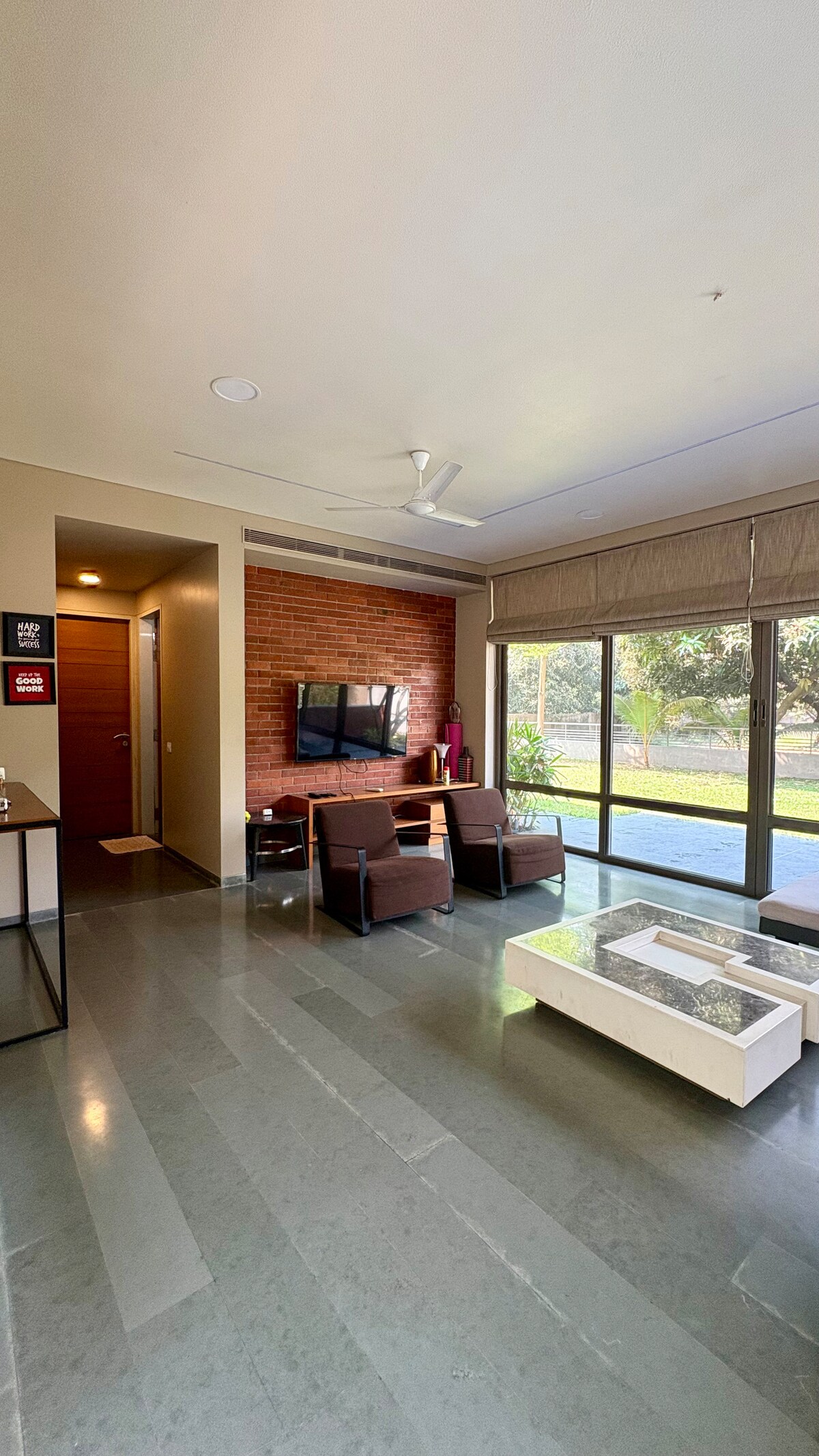 Escape to this serene weekend retreat in the prestigious Kensville Golf Estate near Ahmedabad. Enjoy spacious living, an elevated plunge pool, and nature-inspired relaxation spots. 24-hour caretaker is available for your convenience. Order from the clubhouse or take a short minutes drive to dine there. For local flavors, the caretaker can prepare meals for a nominal fee. Stay active with badminton or explore the estate with two bicycles provided. A perfect getaway for relaxation and recreation