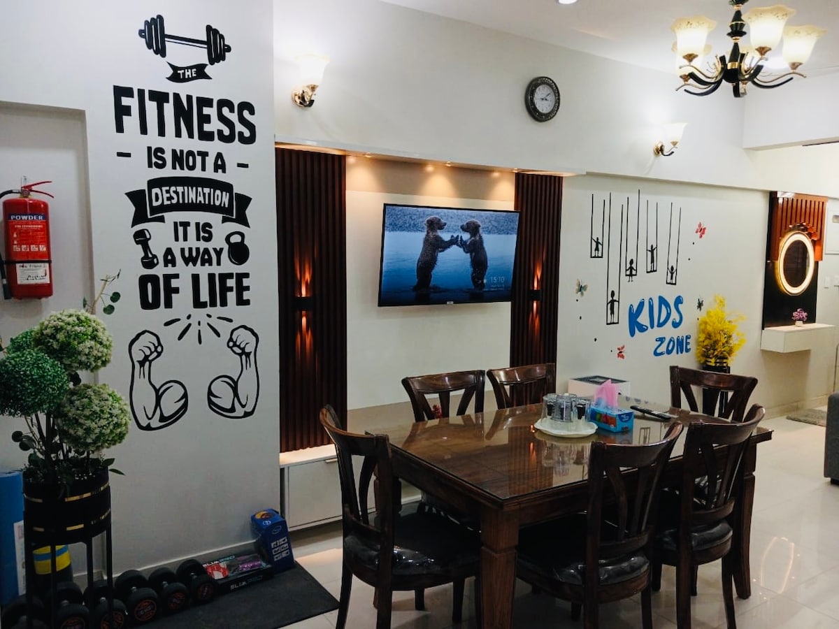 Willkommen zu deinem perfekten Kurzurlaub! Diese elegante, moderne Wohnung kombiniert sauberes Design mit luxuriösen Details, um einen gemütlichen und dennoch gehobenen Rückzugsort zu schaffen. Im Herzen von Big Bukhari (DHA Phase 6) gelegen, bist du nur wenige Schritte von Coffee Bean, Xanders, Lebensmittelgeschäften und einem Geldautomaten direkt gegenüber entfernt. Perfekt für Freunde, Paare, Familien oder Alleinreisende - mit Komfort, Stil und erstklassiger Lage in einem. Buche jetzt für einen fantastischen Aufenthalt!