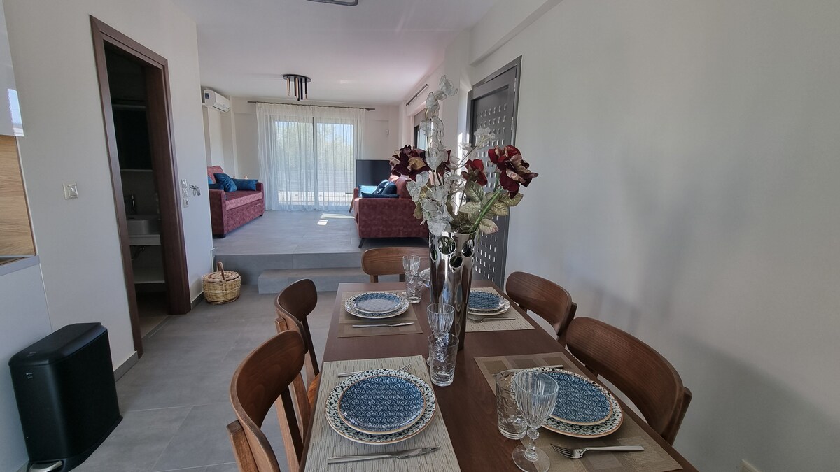 Suite befindet sich vor dem erstaunlichen Strand von Sikia im Korinthischen Golf . Die Wohnung (1. Etage) hat Zugang zu einer 120 m ² großen privaten Terrasse mit Grillmöglichkeiten, Schaukel , Sonnenliegen und Hängematte. Mit 2 Schlafzimmern, 2 Bädern, voll möblierter Küche, Klimaanlage , Kabel-TV und WLAN. Frühstück inklusive.
