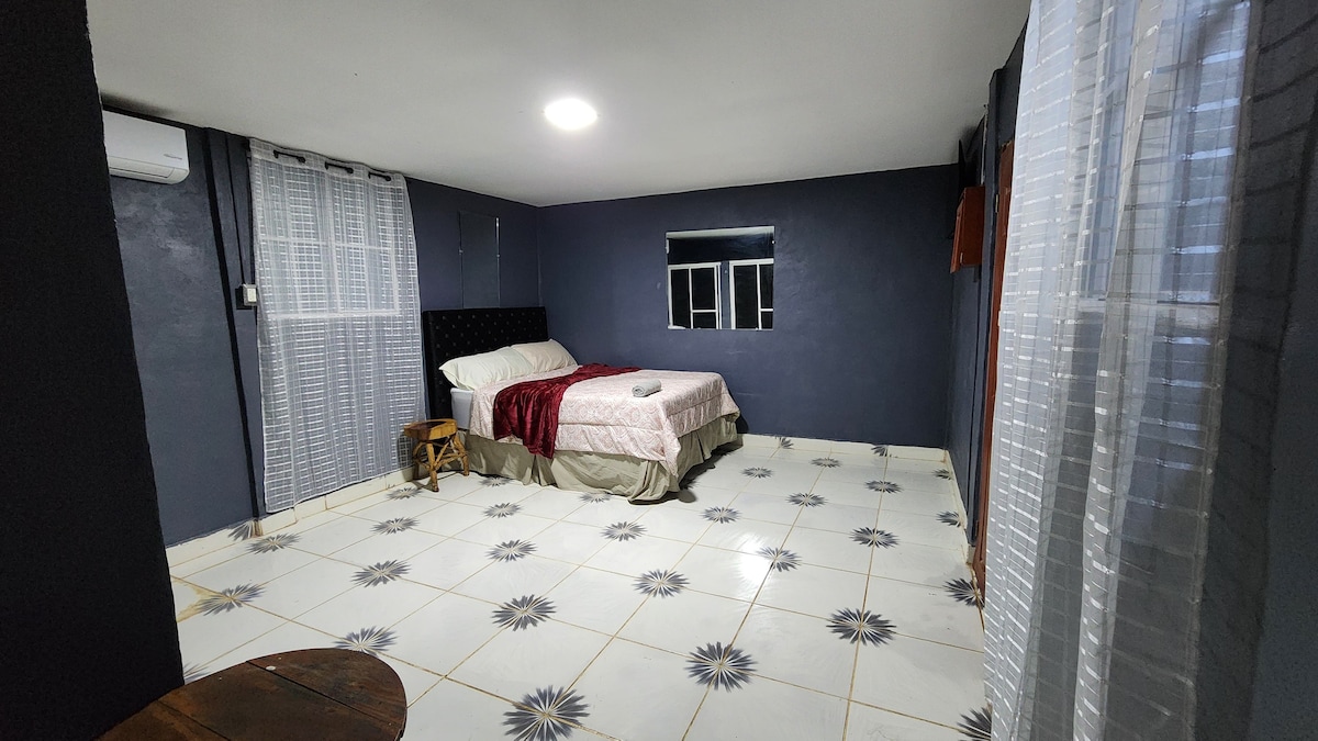 Gemütliche Wohnung mit einem Schlafzimmer im zweiten Stock in einer ruhigen ländlichen Gegend in Chirilagua, San Miguel, El Salvador. Es verfügt über eine voll ausgestattete Küche, eine geräumige Terrasse mit herrlichem Blick und alles Wesentliche für einen angenehmen Aufenthalt. Das wunderschöne Playa Las Flores, berühmt für das Surfen, ist nur 15 Minuten entfernt, perfekt für einen erholsamen Kurzurlaub.
