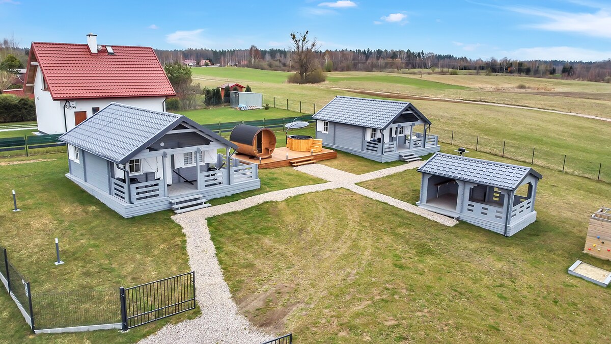Das laute Gras - dies sind zwei Holzhäuser 35 m ² + 20 m ² Lofthaus in einer ruhigen Gegend, neben den Wäldern des Tuchola-Gebirges. Das Material, aus dem es aus sibirischer Lärche und Cedral war. Aufgrund unserer Liebe zur Natur und unseres Respekts haben wir erneuerbare Energiequellen in Form von Photovoltaik auf dem Dach investiert. Die Unterkunft verfügt über kostenlose öffentliche Parkplätze für unsere Gäste. Die Umgebung unserer Häuser ist in erster Linie Grün und vielfältige Vegetation