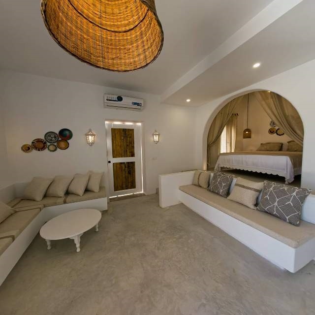 Plongez dans l'élégance intemporelle d'une maison d'hôte au décor traditionnel, située à quelques pas d'une plage enchanteresse. Dès votre arrivée, vous serez charmé par le mélange subtil de bois sculpté, de tissus aux motifs classiques et d'objets artisanaux qui créent une atmosphère authentique et chaleureuse. Dar Morjana est le lieu idéal pour une évasion paisible, où chaque détail a été pensé pour votre confort et votre plaisir.