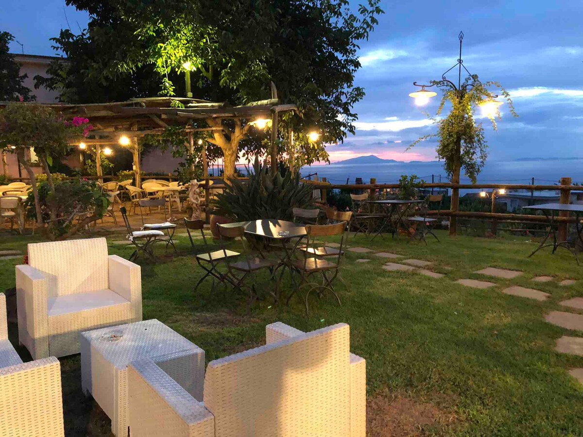 Amazing sunsets across the Gulf of Sorrento from the property's balcony overlooking the sea of historic Villa from '800. Charming, elegant and well-equipped holiday home in exclusive property. A double bedroom, a living room with a very comfortable double sofabed, two bathrooms, kitchenette. It features by stone walls, high ceilings, antique furniture, alongside contemporary features such as infrared sauna, chromotherapy shower, fast wifi. Private patio. Free car parking. CUSR 15063080EXT1055