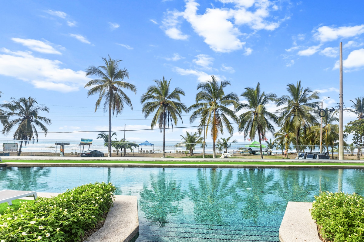 Beautifully renovated, penthouse right ON THE BEACH! Amazing ocean views with multiple balconies and PRIVATE roof top terrace. Gorgeous 3 tier pool area and fast WiFi with 2 Smart TVs. Just steps to the beach and 10-15 minute walk to dozens of restaurants and shops! Gated complex with 24/7 security. Tons to do in and around Jaco, everything from world class fishing and surfing to rain forest waterfall hikes, to ATV tours, whitewater rafting and zip lining, etc Enjoy the Pura Vida lifestyle 😊