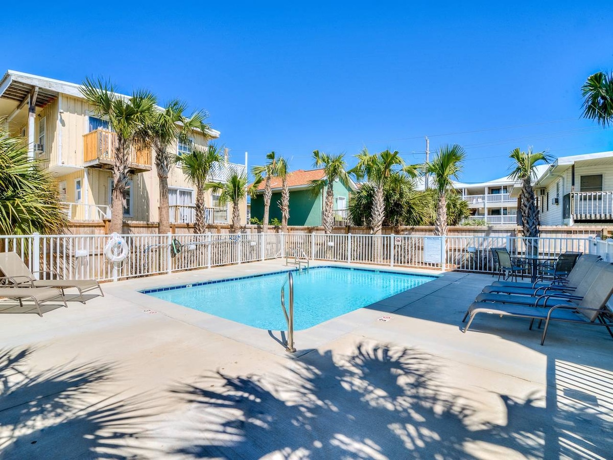 Steps from Gulf Shores' white-sand beaches, this stylish 2-bed, 3-bath coastal cottage comfortably sleeps 6. Enjoy a sparkling community pool right outside your door, two private ensuite bedrooms, and a fully equipped kitchen. Perfect for families, this retreat includes a beach wagon, chairs, and a Pack 'n Play. Relax on the covered balcony overlooking the pool after a day of sun and sand. Your ultimate coastal getaway awaits at True Blue!