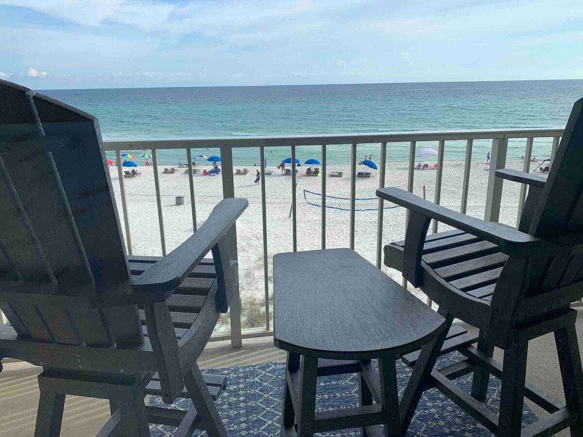 Gulf-Front-Wohnung mit direktem, ungehinderten Meerblick! Genieße von dieser Eigentumswohnung am Golf auf der 2. Etage einen direkten Blick auf den Ozean. Diese Wohnung liegt nur wenige Schritte vom Strand und weniger als eine Meile vom Pier Park entfernt und bietet einen privaten Balkon, einen beheizten Außenpool (nur in den Wintermonaten) und ein Kingsize-Bett - unmittelbarer Strand- und Poolzugang. Perfekt für Strandliebhaber, die voll ausgestattete Küche und das Highspeed-WLAN bieten den gleichen Komfort wie zu Hause. Kostenlose Parkplätze. Perfekt für Familien, Freunde und Paare. Buche noch heute deinen PCB-Urlaub!