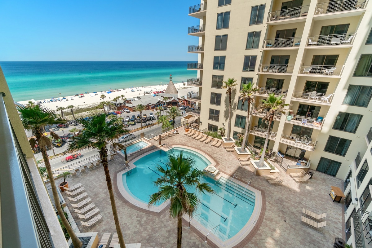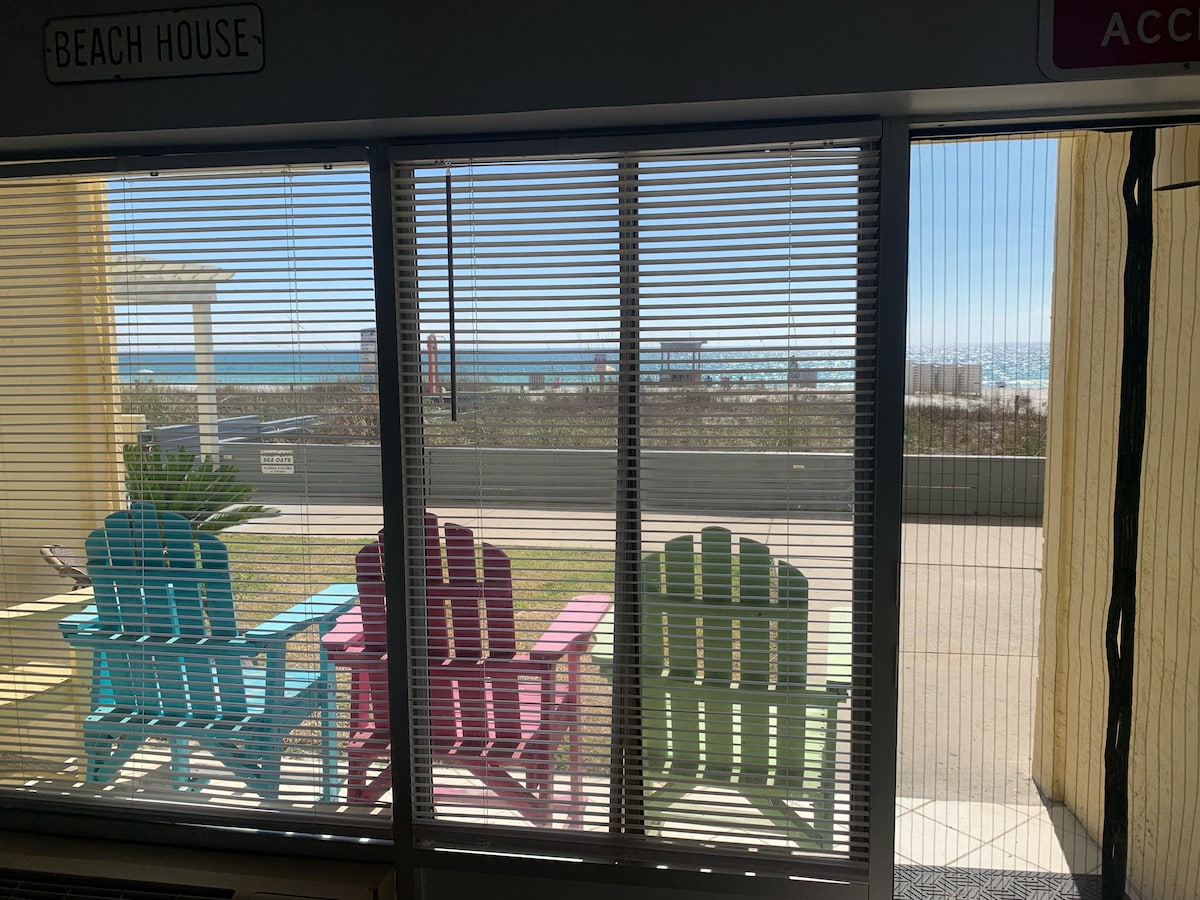 NO EXTRA FEES AFTER BOOKING! Wake up to Gulf views from your PRIVATE BEACHFRONT BALCONY in this charming, low-rise condo. Step directly onto sugar-white sand and emerald waters just outside your door. Enjoy a year-round, seasonally heated pool with an easy walk to Pier Park for dining, shopping, attractions, and nightlife. Looking for different dates or layout? I own 5 condos in this building. Click my host profile, then scroll down to view all of my listings.🌴