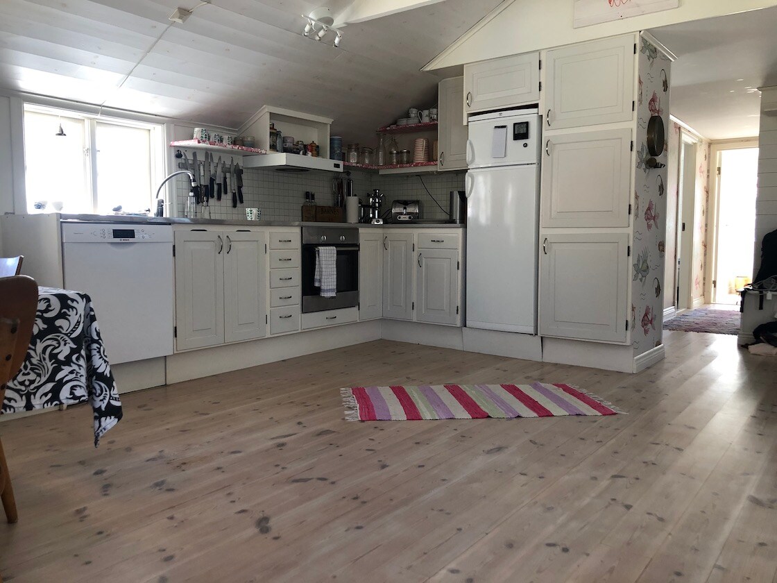 Attefall Ferienhaus mit allem Komfort und High-Speed-WLAN! In der Kabine gibt es eine gut ausgestattete Küche, einen Gemeinschaftsbereich mit direktem Ausgang zu einer eigenen schönen Terrasse mit Meerblick und ein schönes Badezimmer mit Dusche. Die Terrasse verfügt sowohl über Gartenmöbel als auch über Sonnenliegen. Insgesamt fünf Betten, aber ideal für zwei Erwachsene! Auch wenn die Quadratmeterzahl gering ist, erleben Sie, dass alles in der Kabine untergebracht ist. Direkt draußen befindet sich ein Parkplatz und hier findest du auch den Weg hinunter zum Steg und zum Meer. Sonnenuntergangsbank. Schön, dass du da bist!