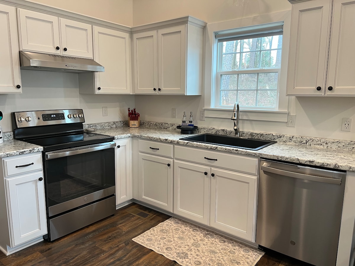 BRANDNEUES 490 Quadratfuß kleines Haus/Ferienhaus im Wald in einer ländlichen Umgebung. Komplett mit einem Queensize-Schlafzimmer, einem Doppel-/Tagesbett und dann einem Queensize-Bett im Loft (bietet bequem Platz für 4 Erwachsene und ein Kind). Wir befinden uns günstig 10 Meilen von der I-85 Ausfahrt 1 auf dem S Hwy 11. 20 Minuten von Clemson, 8 Minuten von Seneca und nur eine kurze Fahrt von vielen Wanderwegen, Seen und Parks in den schönen Ausläufern der Blue Ridge Berge entfernt.