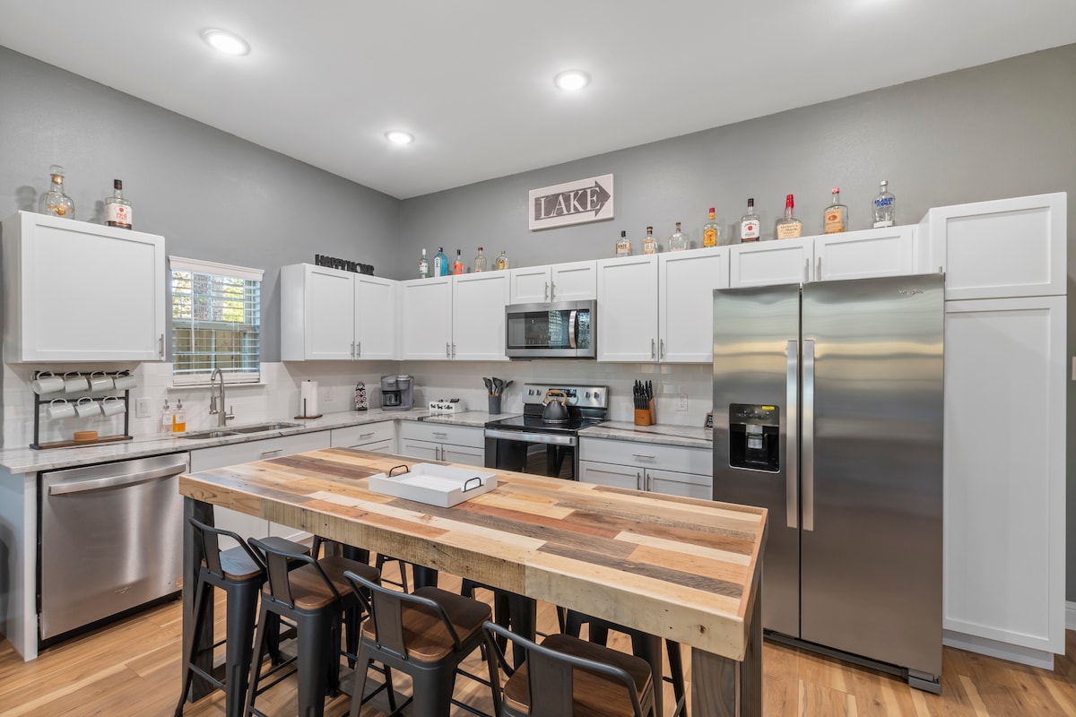 "Sunshine & Whiskey" is a 3 bedroom/2 bath home (sleeps 8) Amenities Include: Hot Tub, Firepit, Pool Table, Air Hockey, BBQ Grill, Foosball, Shuffleboard, Ping-Pong, and more - located just a five minute walk to Cedar Creek Lake. Enough space for 8, but not too large for a couple. This thoughtfully finished home is as equally comfortable and it is fun. No matter the reason for your visit, your time will be well spent!