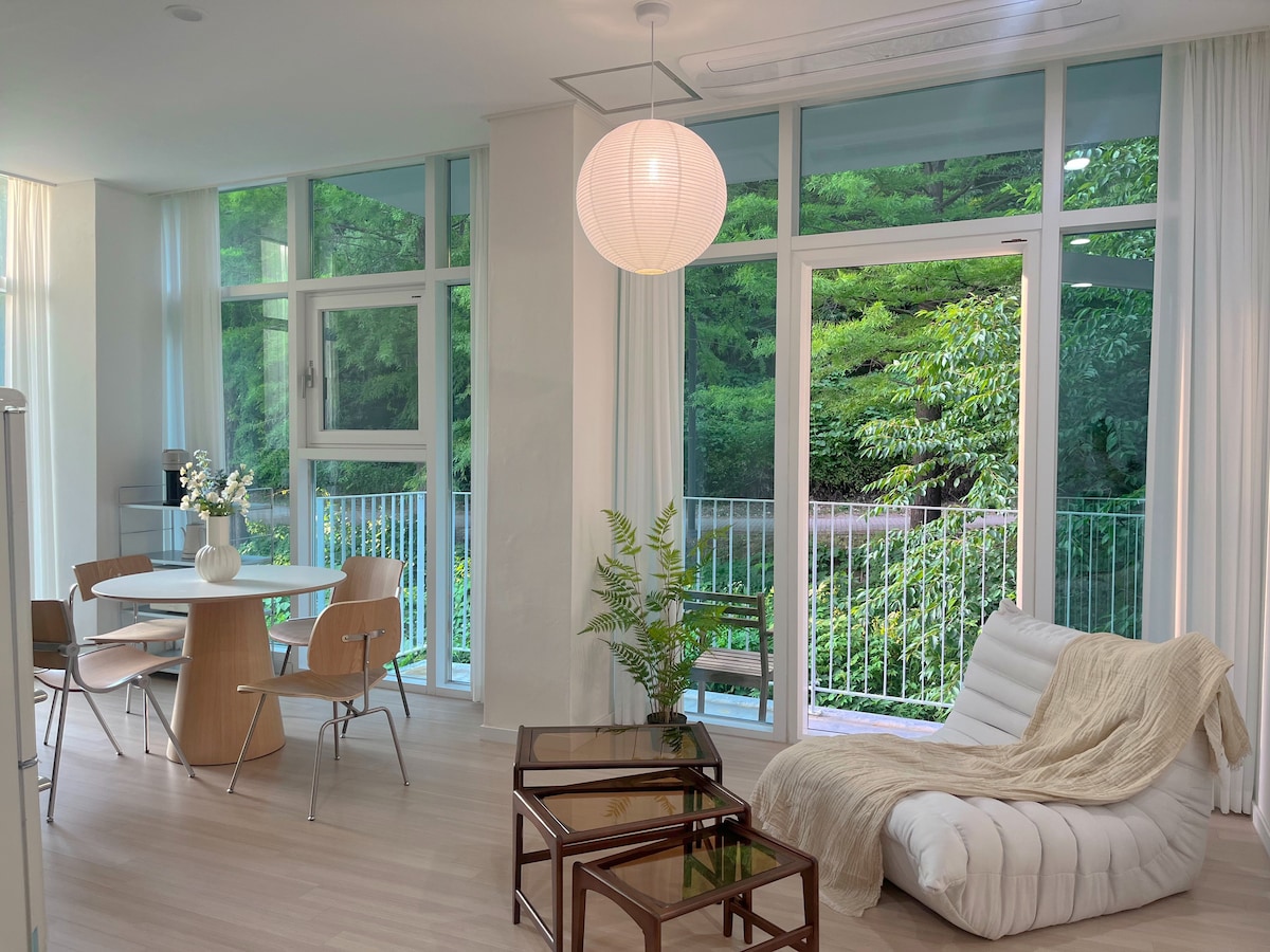 Im Rücken siehst du den Pinienwald des Hinterlandes, Yongju Seowon auf der linken Seite und einen Garten von etwa 200 Pyeong und vorne mit Blick auf die ruhige Landschaft. Der Garten ist noch unvollendet, also pflanze ich weiterhin Blumen und Bäume. An einem klaren Tag sieht man Bukhansan in der Ferne, und man sieht schöne Blumen und Bäume entlang der Frühlings-, Sommer-, Herbst- und Wintersaison. Es ist eine ruhige Unterkunft, weil es nicht ruhig ist, sodass man sich bequem ausruhen kann. Es ist sehr unabhängig und Privatsphäre ohne Blick auf den ersten Stock oder das Haus nebenan. Das Interieur ist weiß und farblos eingerichtet und bevorzugt einfache Dinge. Kleine Haustiere sind erlaubt, und es gibt 2 Kissen und 1 Futternapf. Beam-Projektor und Karaoke-Waschbecken Es gibt zwei Mikrofone, einschließlich drahtloser Mikrofone. Wir haben eine Wolkenbrücke installiert, die zur Terrasse und zum Garten führt, was es bequemer macht, den Garten und die Landschaft zu genießen. Für den Sommer gibt es zwei Ventilator, eine kalte Klimaanlage, einen Luftentfeuchter und eine Gyoza-Statue. Es ist eine Pension, die jeden Tag aufgewertet wird.