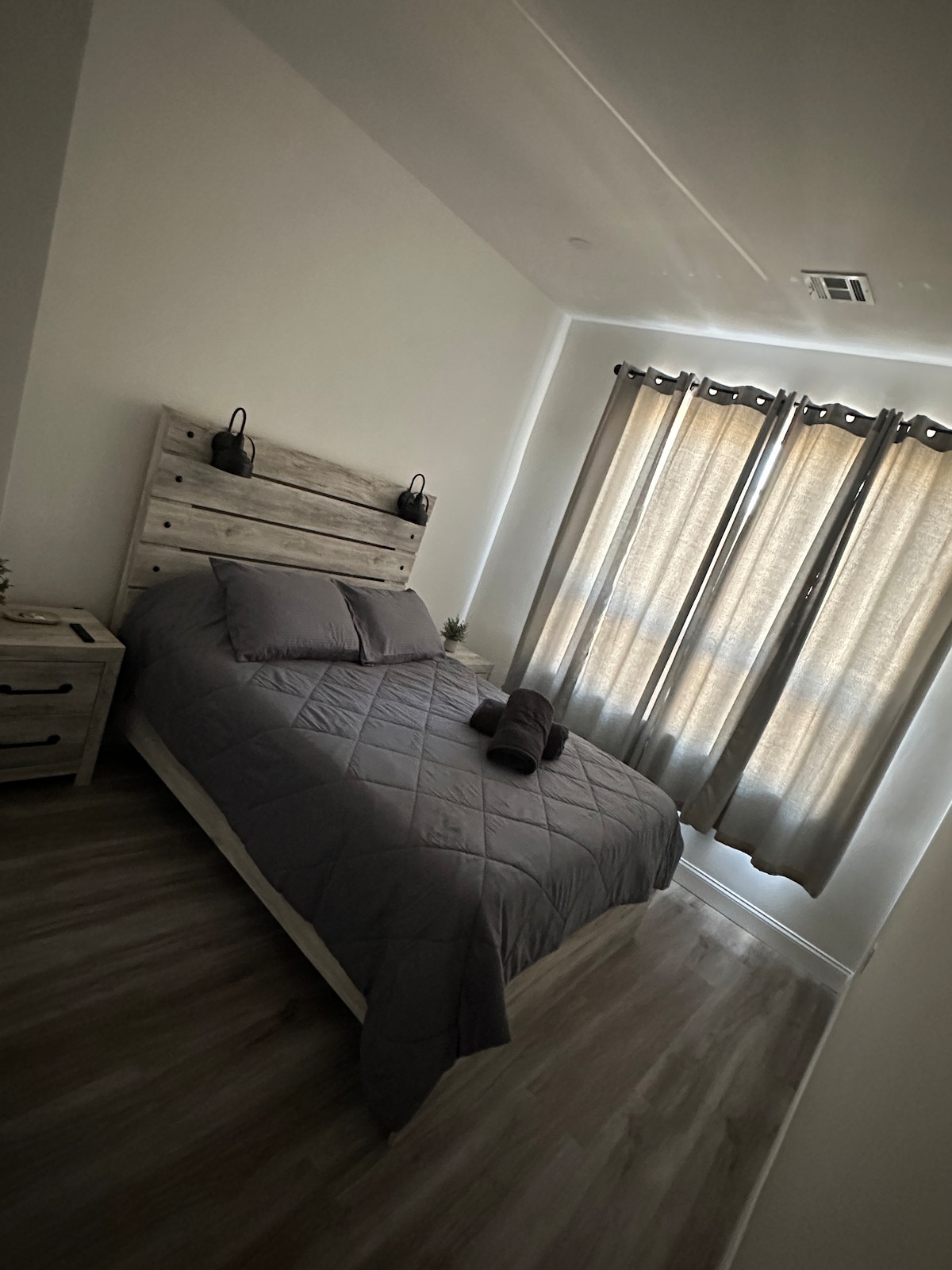 Please note: This is a 1-bedroom apartment, and the bathroom is inside the bedroom. For larger groups, an air mattress can be set up in the living room. Guests staying there will need to walk through the bedroom to access the bathroom. Great for families or close friends traveling together. The apartment includes one bedroom, a kitchen, and a living room. The neighborhood is quiet and safe, with a bus every 15 minutes. Manhattan is about 20 minutes away, and the bus stop is a 3-minute walk.