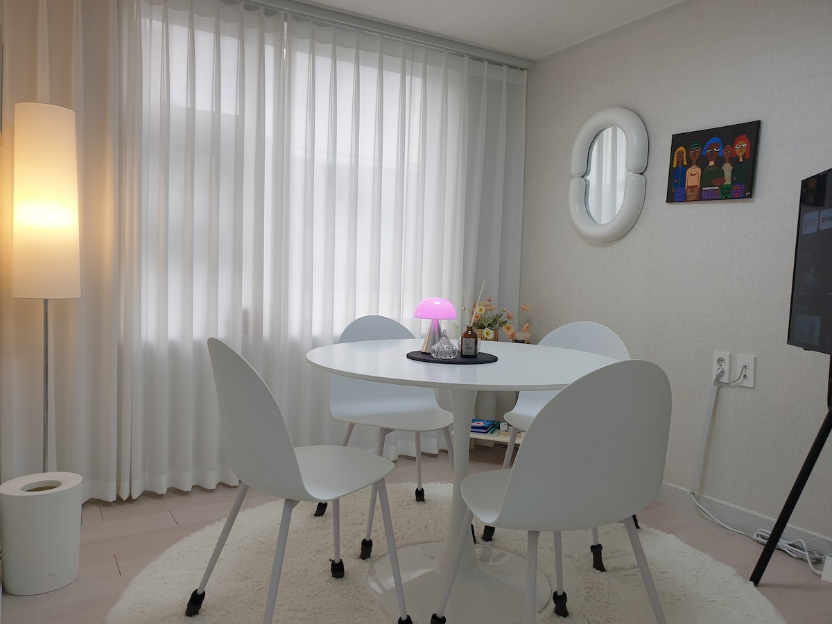 [Snowflake] Dieses neu erbaute Gebäude ist ein guter 182m² großes Haus, in dem ein gemütlicher und schöner Stil kombiniert wird, um eine gute Zeit mit Freunden/Familie zu verbringen. Es ist eine geräumige Unterkunft, die sich mit einem Wohnzimmer, das sich wie ein Resort anfühlt, bis zur Küche eignet, um mehrere Personen zusammen zu beherbergen, und ist eine warme und ordentliche Unterkunft, in der weiche beige Farben und antike Requisiten harmonisch miteinander harmonieren. Ein Haus kann vollständig genutzt werden und der Besitzer wohnt in der Nähe, so dass es sehr gut gepflegt ist. In der Unterkunft ist ein großer Beamer vorhanden. Ein großer Tisch ist in der Küche und im Loft vorhanden. Waschmaschine und Trockner, Kaffeemaschine, Wasserkocher und Bluetooth-Lautsprecher sind vorhanden. Es gibt insgesamt 3 Zimmer, die mit hochwertigen Matratzen und Hotelbetten ausgestattet sind. Es gibt 3 Badezimmer, die mit allen Annehmlichkeiten ausgestattet sind und ohne Unannehmlichkeiten genutzt werden können. Sammeln Sie sich im geräumigen Wohnzimmer und auf dem Dach und hinterlassen Sie angenehme Erinnerungen:) * Haustiere sind nicht erlaubt. * Wenn Sie weitere Fragen haben, wenden Sie sich bitte jederzeit an uns;)