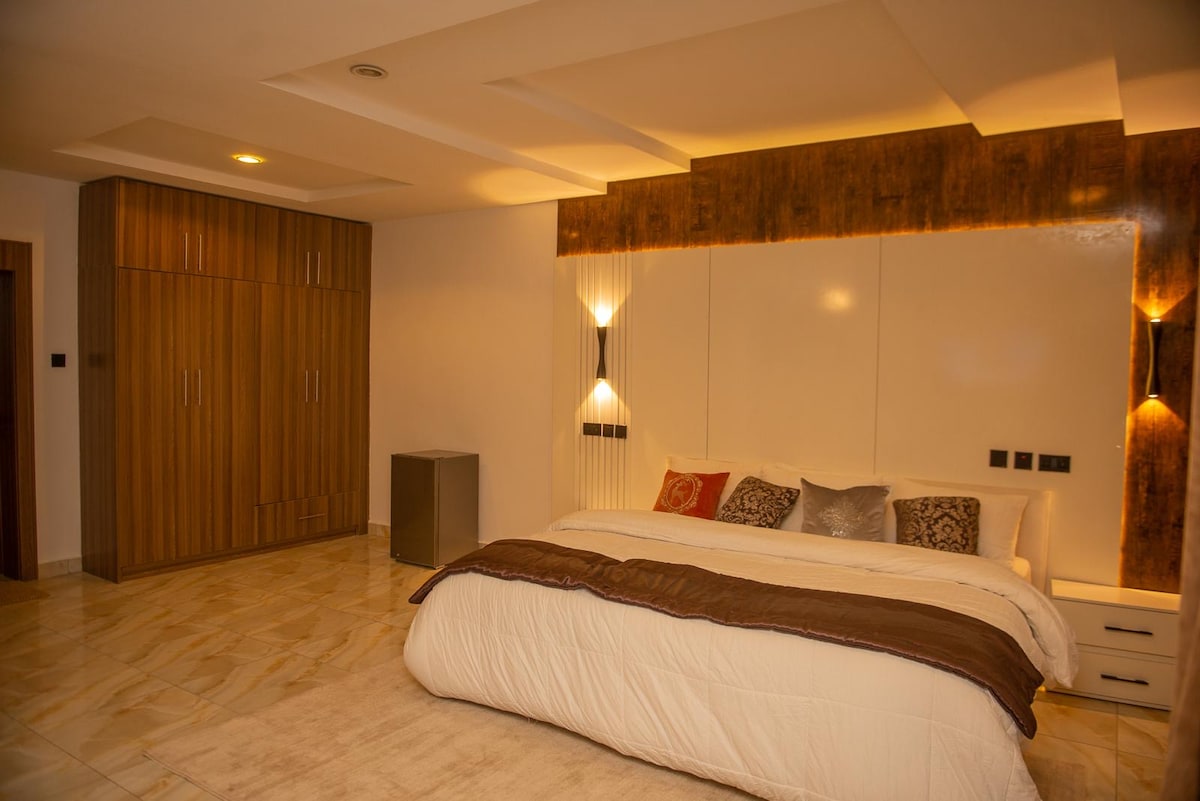 BRAND NEW BUILD ! The whole group will enjoy easy access to central abuja from this strategically located place. Escape to our Executive Room at TimeOak. Dive into the pool. Stream endlessly with 24/7 WiFi. Enjoy round-the-clock room service. Chill at the bar. Catch games at the outdoor viewing center. And dine at our restaurant anytime! Your room comes with AC and a hot water heater for the perfect stay. The ideal spot for fun, rest, and luxury in Utako!
