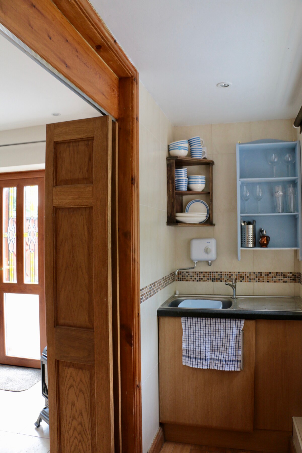 Ein schönes Ferienhaus in schöner Landschaft im Brecon Beacons Nationalpark mit freiliegenden Steinen, Eichenbalken, Fliesenboden, Fußbodenheizung und Holzofen. Der Wohnbereich ist geräumig und dennoch gemütlich, mit einer gut ausgestatteten Küche und einem Essbereich. Großes Schlafzimmer mit einem Kingsize-Bett und einem stilvollen Badezimmer mit Dusche. Die Gäste haben die alleinige Nutzung einer sonnigen, nach Südwesten ausgerichteten Terrasse mit herrlichem Blick über das Sawdde Valley.