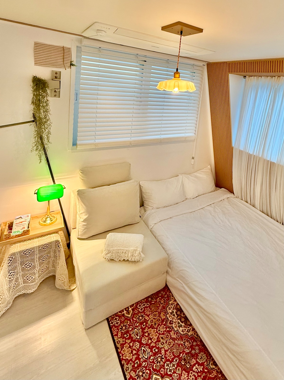 „NORMALE DINGE“ sind gegen die Normalität des täglichen. Ich möchte eine komfortable Unbekanntheit durch diesen Ort bieten, der mit gewöhnlichen Dingen gefüllt ist, die im Alltag leicht zu sehen sind. Spüre tagsüber die kühle Brise und das warme Sonnenlicht, das durch das große Fenster kommt. abends kannst du dich entspannen und deine Lieblingsmusik hören. Check in: 15:00 Uhr Check-out: 11.00 Uhr Empfiehl eine Buchung für 2 Personen. (Doppelbettzimmer, 2 Betten nicht verfügbar) 3 Personen: Bettwäsche-Set auf Schlafsofa in kleinem Zimmer