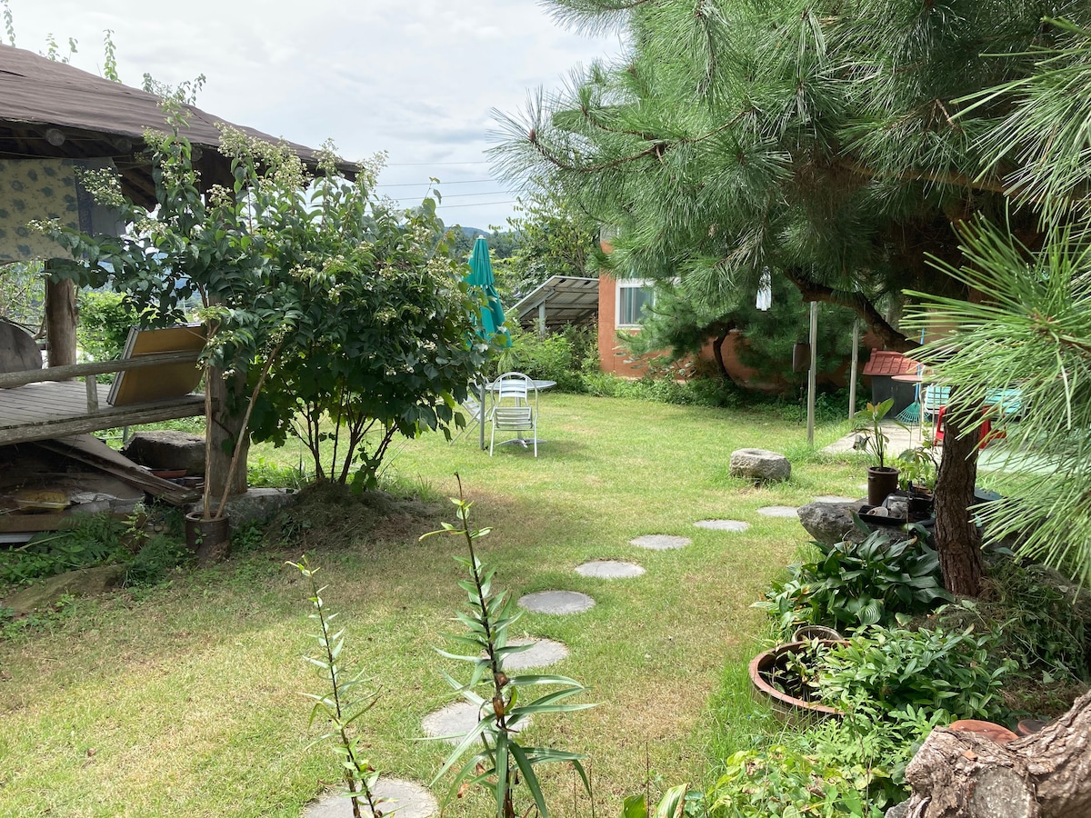 별채로 단독사용이고 유기농마을이라 공기도 깨끗합니다. 귀농하여 유기농으로 농사를 짓습니다 팬션단지 아닌 시골마을이라 시내처럼 큰마트는 없어요. Du kannst es alleine als separates Gebäude nutzen. Im 1. Stock befindet sich ein Wohnzimmer, eine Küche, eine Toilette und ein Hauswirtschaftsraum, und im 2. Stock befindet sich ein Erdbett und eine Terrasse. Wenn du im Schlafzimmer die Augen öffnest, kannst du den Sonnenschein und die Landschaft durch das Fenster genießen. Die Luft ist sauber, weil es ein Bio-Dorf ist. Du kannst das Geräusch unbekannter Vögel hören. Es ist ein ländliches Dorf.