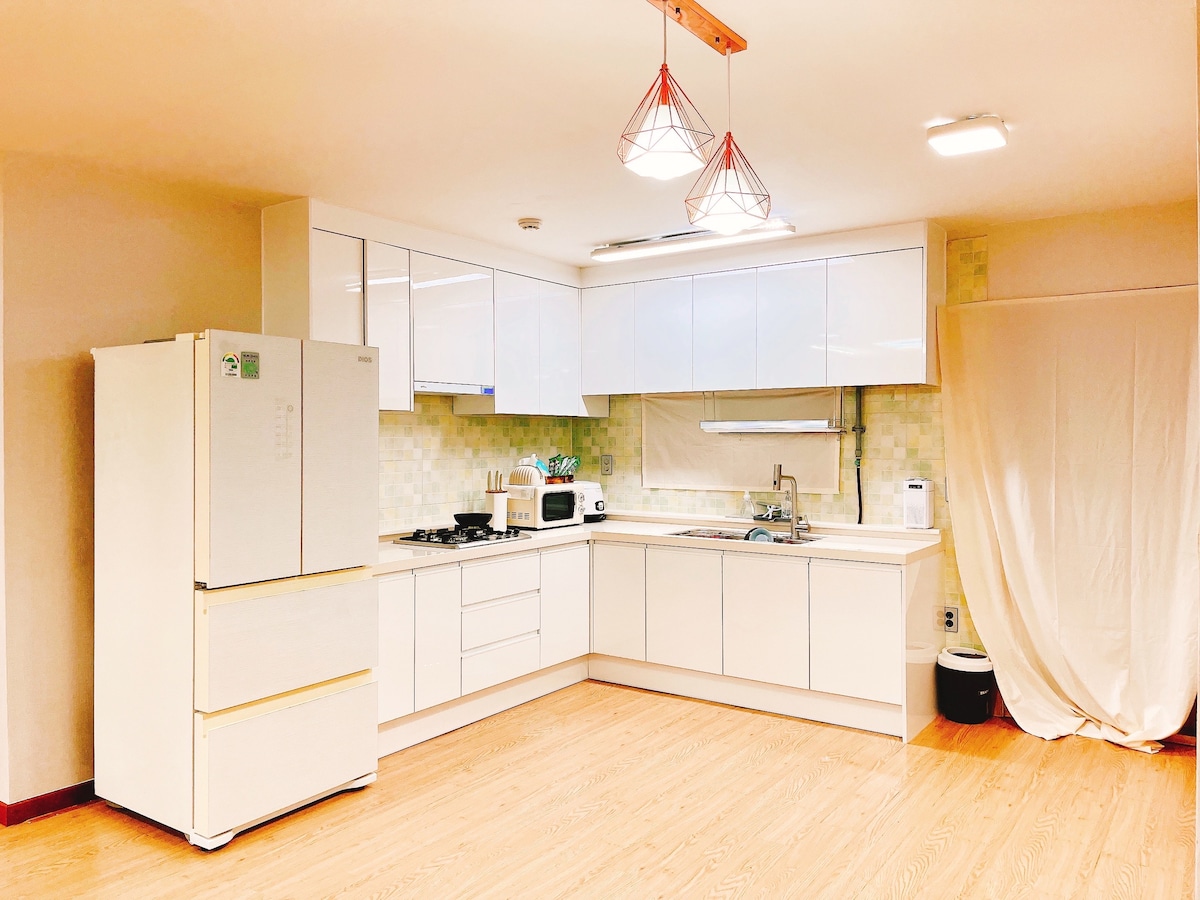 Neues offenes Zuhause klein (Sosohan) Genieße das kleine Glück des Alltags. Diese Unterkunft befindet sich im Bahnhofsbereich in 1 Minute. Es ist auch in der Nähe der Flughafenbushaltestelle. Es ist der beste Ort, um auf dem Weg zum Flughafen anzuhalten. 1. Bestpreisige Mehrpersonenunterkunft Diese Unterkunft ist das beste Preis-Leistungs-Verhältnis für bis zu 8 Personen. (💚Bettwäsche wird je nach Personenzahl bereitgestellt, also gib bitte die richtige Personenzahl ein und überprüfe unten die detaillierte Beschreibung.💚) 2. Superstationsbereich Dies ist eine Super-Station-Unterkunft 1 Minute vom Bahnhof Gyesan entfernt. Flughafenbus- und Metropolitanbushaltestellen befinden sich ebenfalls direkt davor. Flughafen Incheon 40 Minuten Flughafen Gimpo 30 Minuten Hongik Univ. 40 Minuten Es ist der beste Zustand für Reisende. 3. Premium-Bettwäsche-Set Sauberkeit, die jeden Tag gewaschen und desinfiziert wird, hat für uns oberste Priorität, und wir stellen Hotelbettwäsche für einen erholsamen Schlaf zur Verfügung. 4. Viele Annehmlichkeiten Annehmlichkeiten wie Daiso, Olive Young, Supermärkte, Marts, Supermärkte, Lebensmittelgeschäfte, Restaurants und Märkte befinden sich in der Nähe, was die Nutzung bequem macht.