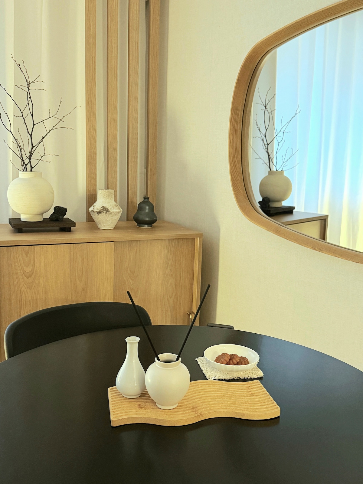 Dies ist das Haus einer Werkstatt und Malerin. Ich wollte die Galerie und den Wohnraum des Lemon House teilen, den ich seit langem gerne lebe. Dies ist ein dreistöckiges Gebäude, und das Zitronenzimmer auf der dritten Etage verfügt über ein Hauptschlafzimmer. Die zweite Etage ist ein Ess- und Wohnbereich, und die Gäste können ihn frei nutzen. Das zitronenförmige Fenster im Zitronenraum ist ein großes Fenster von mir, indem ich mich selbst zeichnete. Wenn du auf dem Bett liegst und nach draußen schaust, siehst du die großen Blätter, die in der Brise schwimmen. * insta l.e.m.o.n.h.o.u.s.e