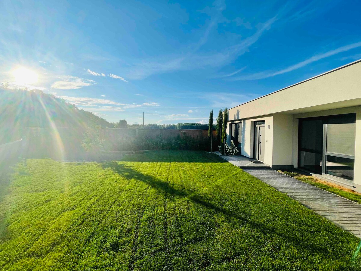 Die Villa befindet sich 6 km von Győr, Győrzámolyon, in einer ruhigen, ruhigen Umgebung entfernt. Die 160 m ² große, stilvoll eingerichtete Villa am See erwartet ihre Gäste mit geräumigen Räumen, einem schönen Garten, einer riesigen überdachten Terrasse von 75 m2, einem Whirlpool für 5 Personen und einer Infrarotsauna! Wir können 7 Personen in den 3 Schlafzimmern und bei Bedarf weitere 2 Personen im Wohnzimmer unterbringen, +1 zusätzliches Bett ist verfügbar. Sie ist ideal für Familien, Freundesgruppen geeignet, die sich in einer malerischen Umgebung erholen möchten.