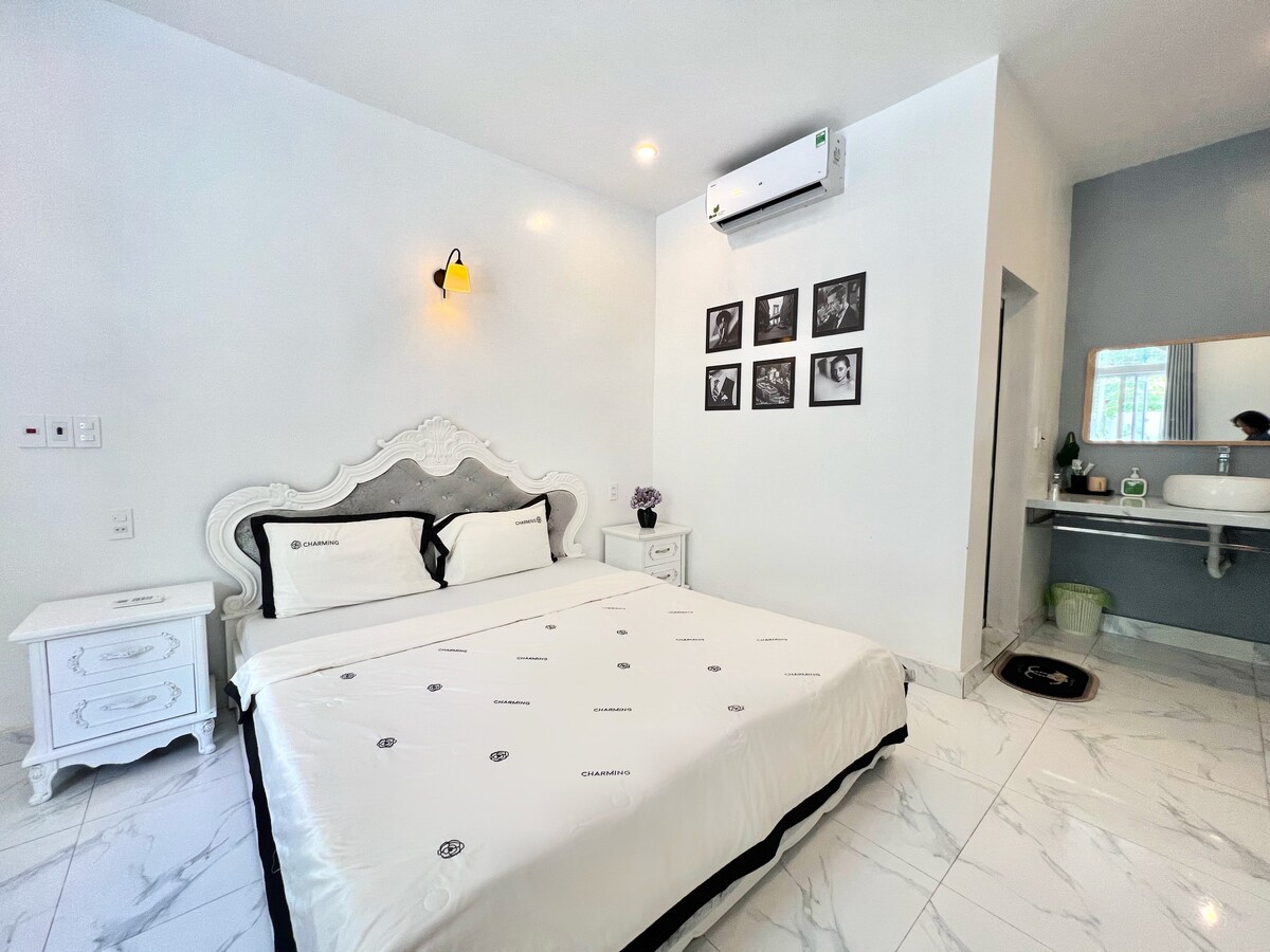 Covering an area of 20m², the Garden-Facing Bungalow with 1 Double Bed is a modernly designed hotel room featuring 2 luxurious single beds, fully equipped with amenities such as air conditioning, private bathroom, hot water bathtub, outdoor seating area, electric kettle... With a perfect view of the garden, this is an ideal choice for couples to enjoy intimate moments.
