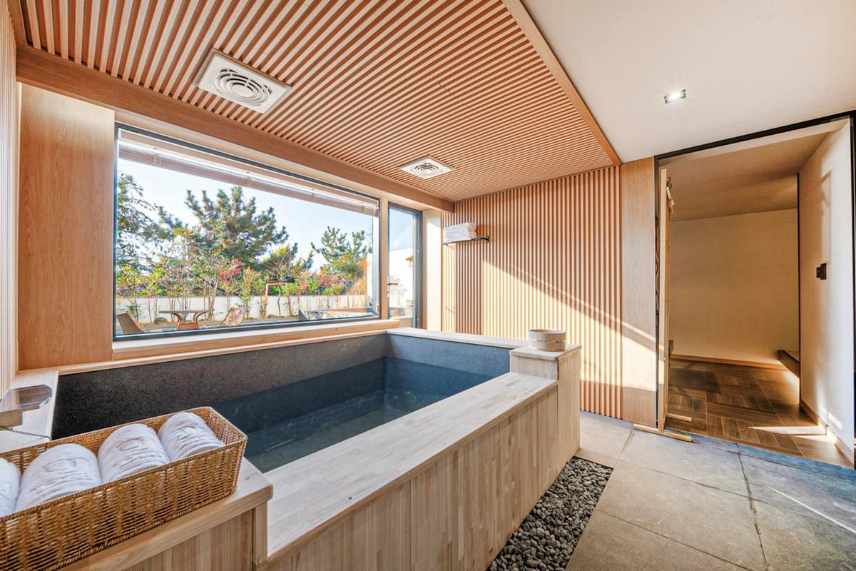 덴바스타 료칸 |테라스 야마 |정통 일본식 료칸 |만덕산 숲캉스 |대형욕조 |1인 사우나