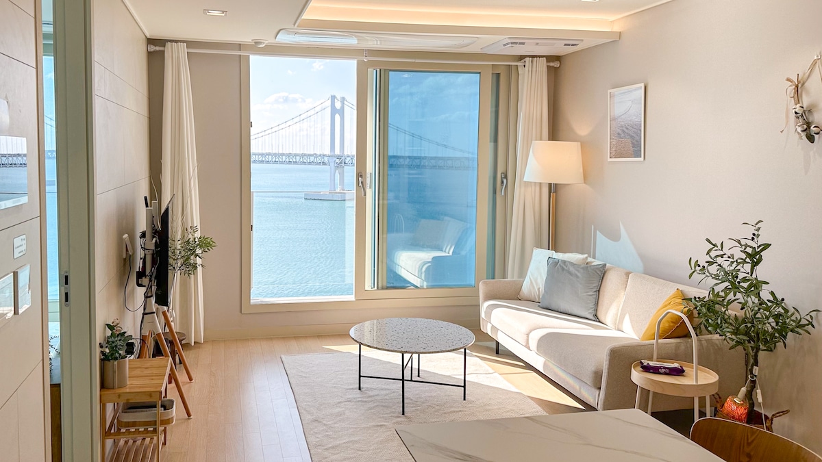🏖 Gwangan MOODRIAN Voller Meerblick auf die Gwangan-Brücke, die einen erstklassigen Lebensstil vervollständigt Gwangalli Moodrian am Gwangalli-Strand in Busan Eine würdige Unterkunft, die für alle Familien-, Pärchen- und Freundschaftsreisen geeignet ist, Das dynamische Panorama der Gwangan-Brücke, das sich vor Ihren Augen entfaltet Dies ist eine Unterkunft mit vollem Meerblick, der von der Vorderseite des Schlafzimmers und des Wohnzimmers aus genossen werden kann. 🏝 Meerblick · Stadtblick · Blick auf die Gwangan-Brücke auf einem Bildschirm Eine seltene neue Wohnung in Gwangalli und ein geräumiger Grundriss mit einer 20 Quadratmeter großen Zwei-Zimmer-Struktur Komfort wie zu Hause, ergänzt durch erstklassige Annehmlichkeiten und durchdachtes Management 🏡 Modernes und stabiles Interieur mit luxuriöser Ausstattung, Von Kurz- bis Langzeitaufenthalten bieten wir den besten Komfort. Wir halten es immer sauber und ordentlich, dank der sorgfältigen Verwaltung des Gastgebers. Komfort ist wie ein Hotel, Das Herz ist näher. 😊 Kleine Momente in Mudrian Ich hoffe, du hast eine schöne Erinnerung 💛