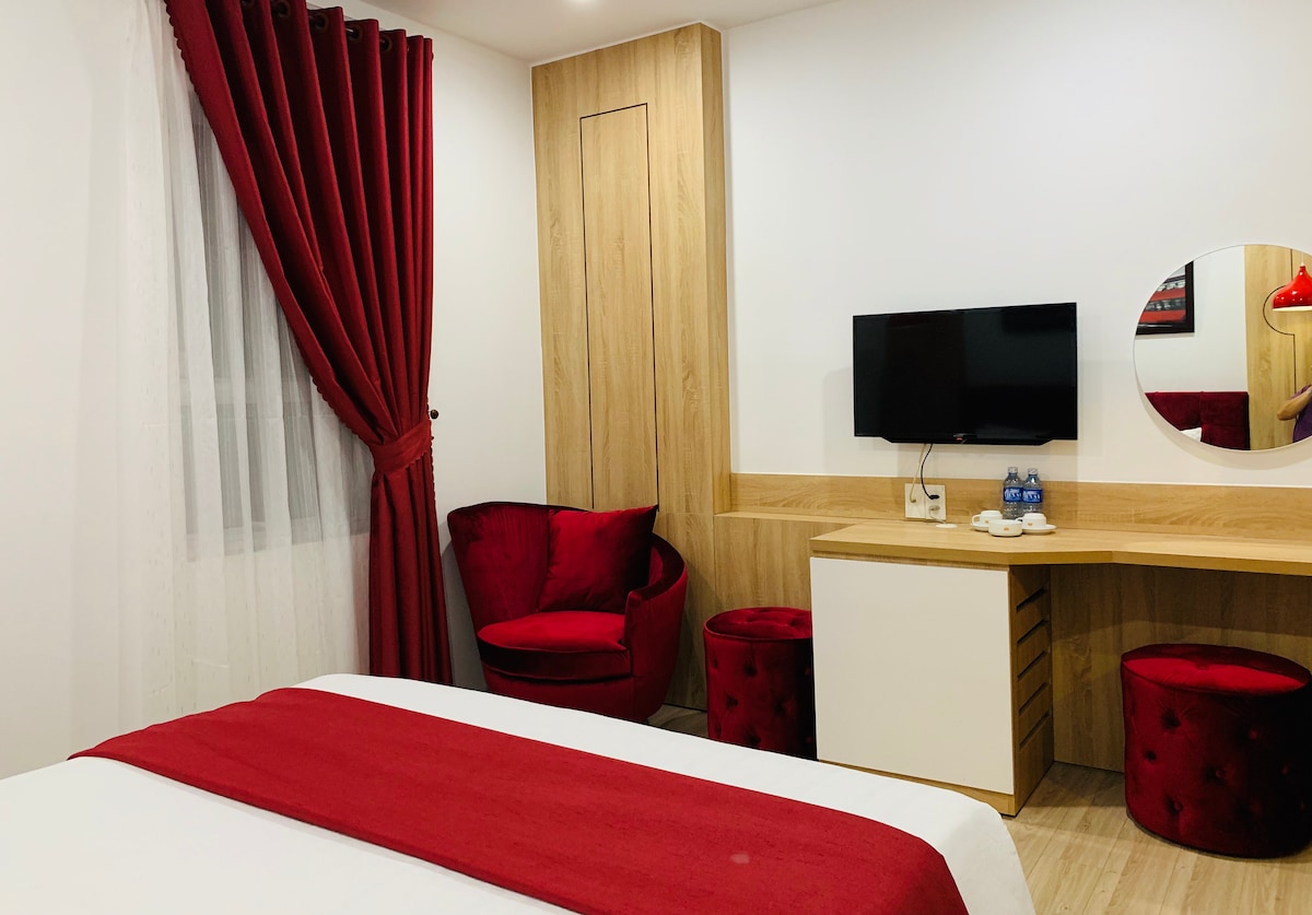 Unser Haus ist von der antiken Stadt Hoi An mitten im Herzen der Stadt Da Nang inspiriert Attraktive Ausstattung: - Gratis Begrüßungsgetränk. - Kostenlose Nutzung von Tee, Kaffee, Mineralwasser im Zimmer - Tägliche Zimmerreinigung gratis. - Voll möbliertes Zimmer mit 1 Queensize-Bett, Smart-TV, Klimaanlage, Telefon, Kleiderschrank und Badezimmer mit kostenlosen Pflegeprodukten Erstklassige Lage, umgeben von berühmten Orten und belebten kulinarischen Gegenden: - Direkt neben der kulinarischen Straße Huynh Thuc Khang, nur 2 Gehminuten entfernt - In der Nähe der Dragon Bridge (7 Minuten zu Fuß)