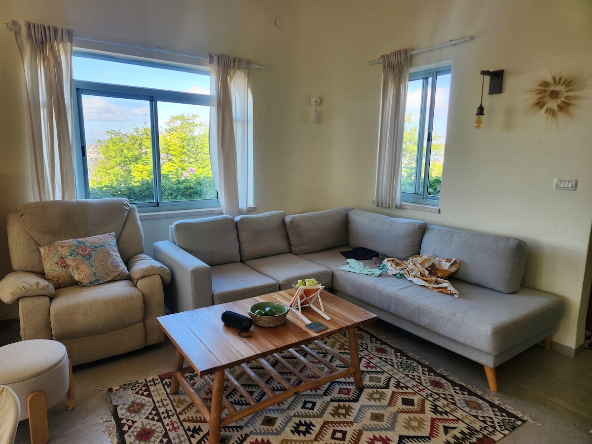 אין ממ"ד. Our unique stone house is nestled in the picturesque artists' village of Ein-Hod. Surrounded by a large garden, the house offers tranquility, privacy and amazing views of the Mediterranean Sea and the Carmel Mountains. The interior is decorated with art, crafts, and antiques, and offers a variety of places to dine, work, read or relax inside and outside. With some of Israel's best beaches just a few minutes' drive away, it’s the perfect place to enjoy your vacation.