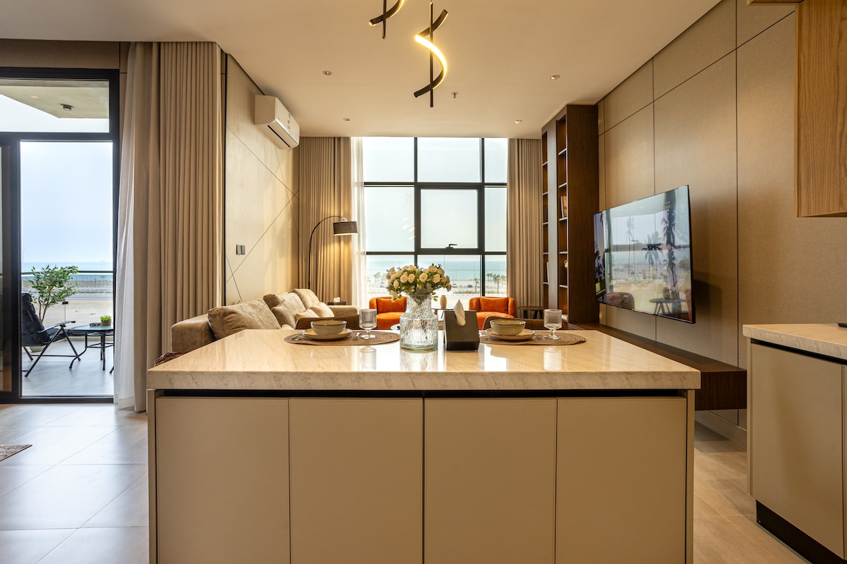 شقة راقية بتصميم عصري أنيق، تضم 3 غرف نوم وشرفة خاصة واسعة بإطلالة بحرية مفتوحة، مثالية لجلسات هادئة في أجواء من الخصوصية والراحة. تتميز بمساحات رحبة، غرفة معيشة أنيقة، مطبخ مجهز بالكامل، وغرفة غسيل تضم غسالة ومجفف. يتوفر اتصال إنترنت عالي السرعة، تلفزيون ذكي، نظام تنقية هواء، وخدمة تنظيف يومية لضمان إقامة مريحة بمعايير ضيافة راقية. خيار مثالي لمن يقدّر المساحة، الإطلالة البحرية، والهدوء. رقم التسجيل: 50039395