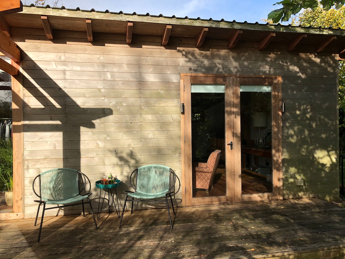 The Potting Shed is a contemporary wooden garden studio nestled at the bottom of my 100 metre garden, located next to a natural woodland area. It is accessed via a key safe and has its own private garden to the rear, which is a haven for natural wildlife including many birds and animals. The garden has a fire pit which guests are welcome to use. Marshmallows provided on request!