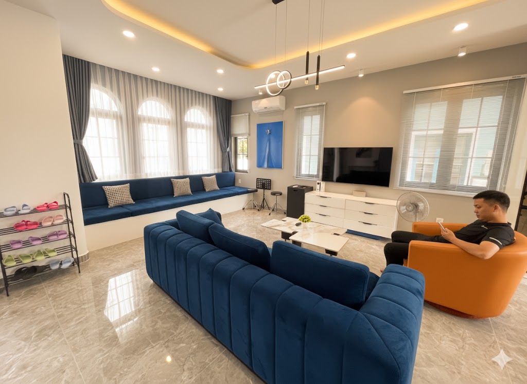 The villa is perfect for family, friends, and couples to host parties and enjoy a relaxing getaway. In addition, Novaworld offers shophouses, an amusement park, a water park, a safari zoo, and many other amenities. Additionally, the villa is very close to the beach, within walking distance or accessible by electric vehicle. The swimming pool is also just about 50 meters away on foot.