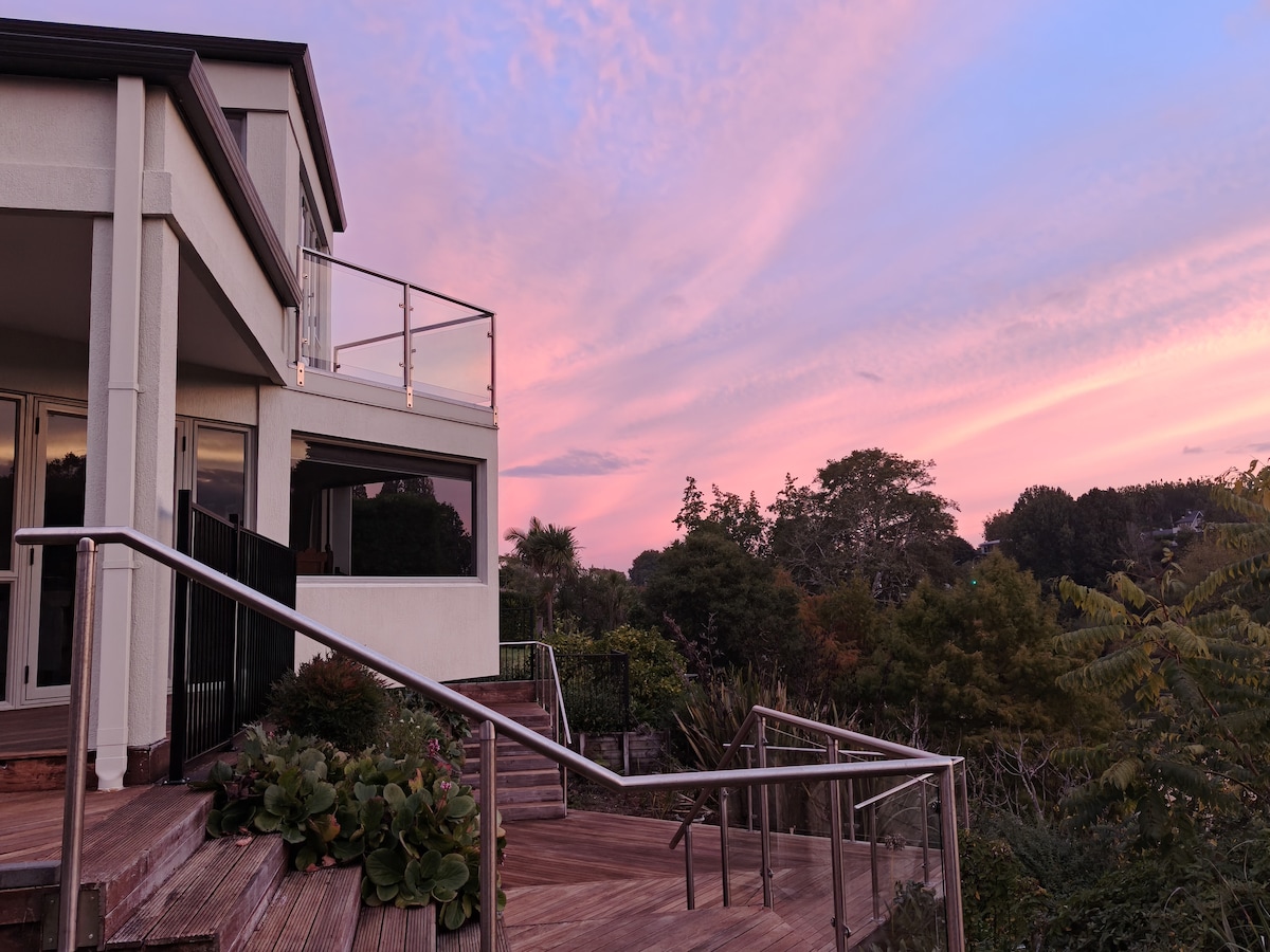 Dieses wunderschöne und elegante Haus bietet einen spektakulären Blick auf den Hamilton Lake. Dieses Haus mit 5 Schlafzimmern und 3 Badezimmern wird dich mit Charme und Pracht beeindrucken. Entspanne dich und genieße eine Mahlzeit und Getränke auf der Außenterrasse, während du den Blick auf den See genießt. Es gibt einen privaten Gehweg hinunter zum See. Zentral gelegen und nur 10 bis 15 Gehminuten oder eine kurze Fahrt vom CBD, den Restaurants, dem Seddon Park oder dem Waikato-Stadion entfernt. Mystery Creek und der Flughafen Hamilton sind 14 km entfernt.
