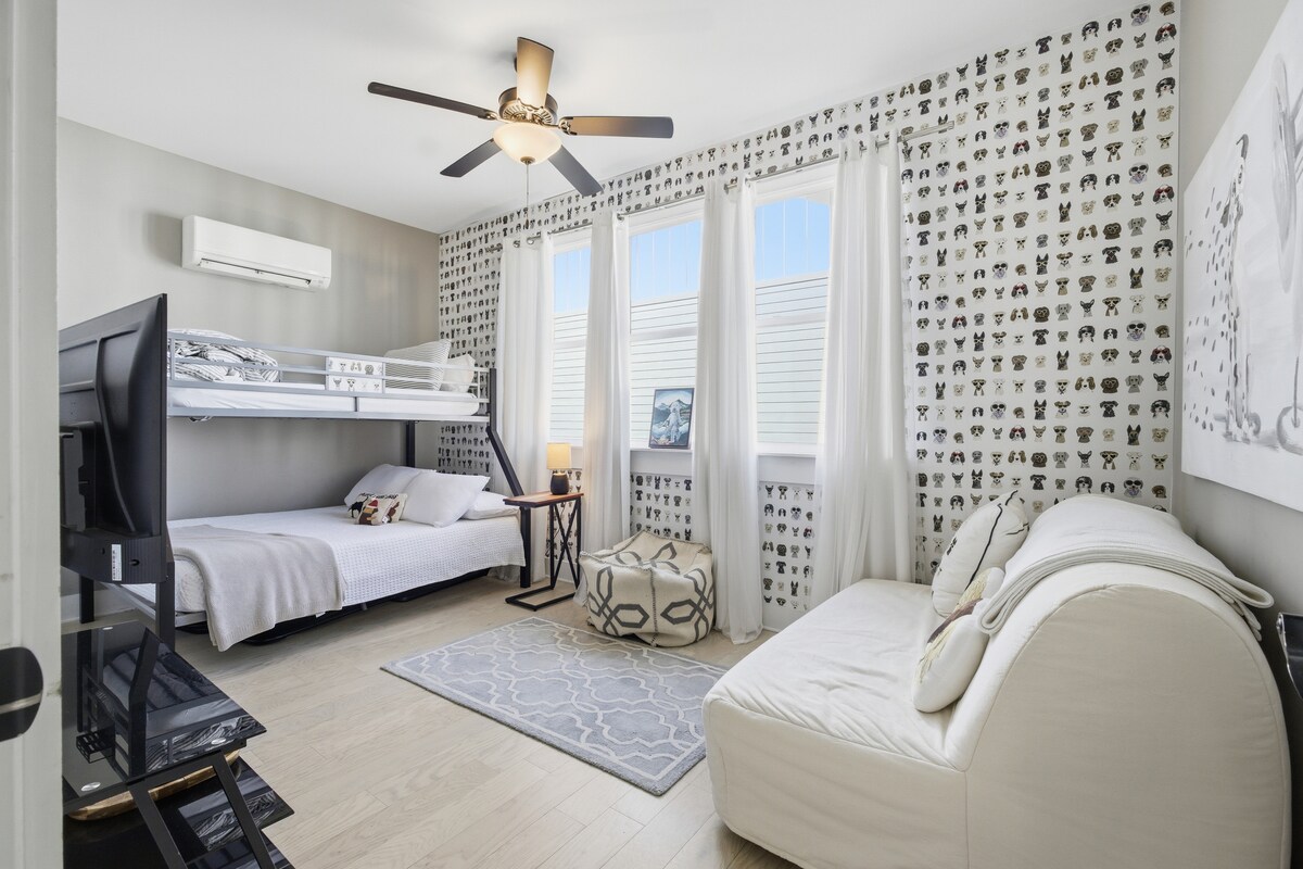 Like something out of the pages of a magazine, the Maple Leaf has a sophisticated designer elegance. As you enter the front door, the impeccably imagined living room is welcoming, offering coordinated furnishings and decor. An accent wall is a playful touch. The third floor is the dedicated workspace, with a sofa for additional inspiration. Find a new perspective on your private third-floor deck with a hot cup of coffee from Velo Coffee located directly across the street. Loft-style BR/1BA.