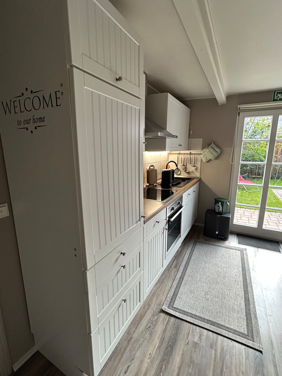 Das Apartment ist eine separate abgeschlossene Wohnung in unserem Wohnhaus. Dazu gehören der große Wohn-Schlafraum mit komplett eingerichteter Küchenzeile und ein geräumiges Tageslicht-Badezimmer mit bodengleicher Dusche. Aus unserer Sicht ist das ganze barrierefrei (Rampe vor dem Haus /breite Türen). Über die Terrasse erreichst du unseren großen Garten, den du (nach Absprache) gerne mitnutzen kannst. Die Möblierung kann von den Fotos etwas abweichen, ist aber immer sehr gästefreundlich.