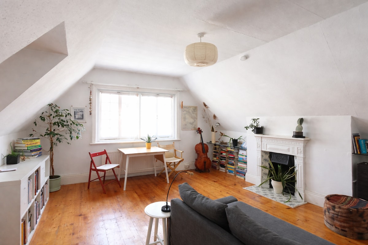 Tucked away at the top of a period home is a completely renovated apartment offering superb views of the surrounding area with all new furniture and fittings. The space The loft space comprises of a lounge, kitchen, bedroom and bathroom. Guest access. Guests enter through main house front door and climb 2 flights of stairs to their own floor. Other things to note We have 2 cats. Also there is a seating area at the front of the house which catches the afternoon sun.