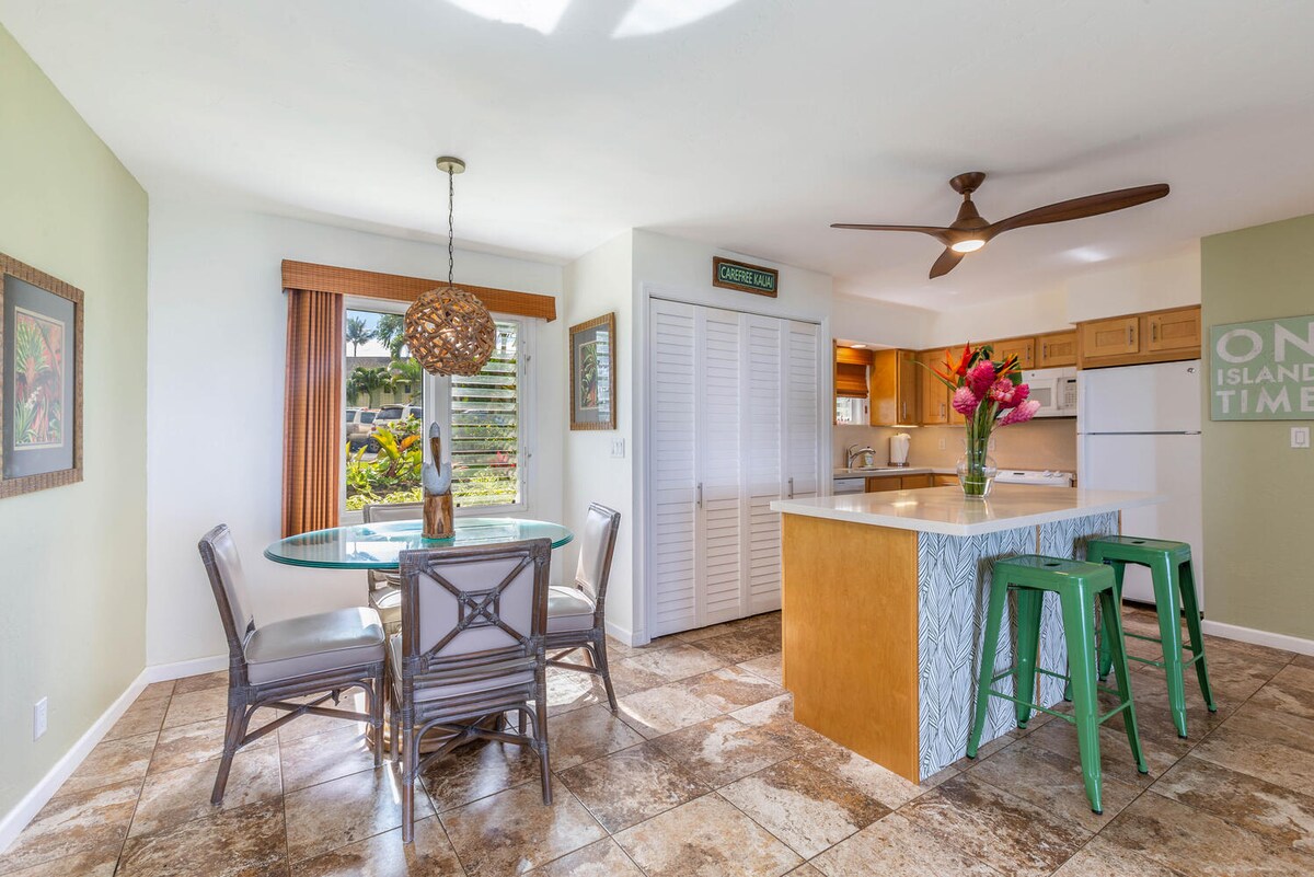 Unser Hideaway Beach Condo verfügt über gewölbte Decken und eine private Lanai mit Blick auf die Hanalei Bay in der Ferne. Kingsize-Bett & komfortables Wohnzimmer mit High-Speed-WLAN und neu installierter Klimaanlage! Das Hotel liegt gegenüber dem Meer mit Zugang zum Hideaways Beach. Der Park am Meer auf der anderen Straßenseite ist ideal, um den Sonnenuntergang auf Bali Hai zu genießen. Kauais beste Strände zum Schnorcheln und Surfen - Tunnel, Ke'e und Hanalei Bay befinden sich direkt auf der Straße!!