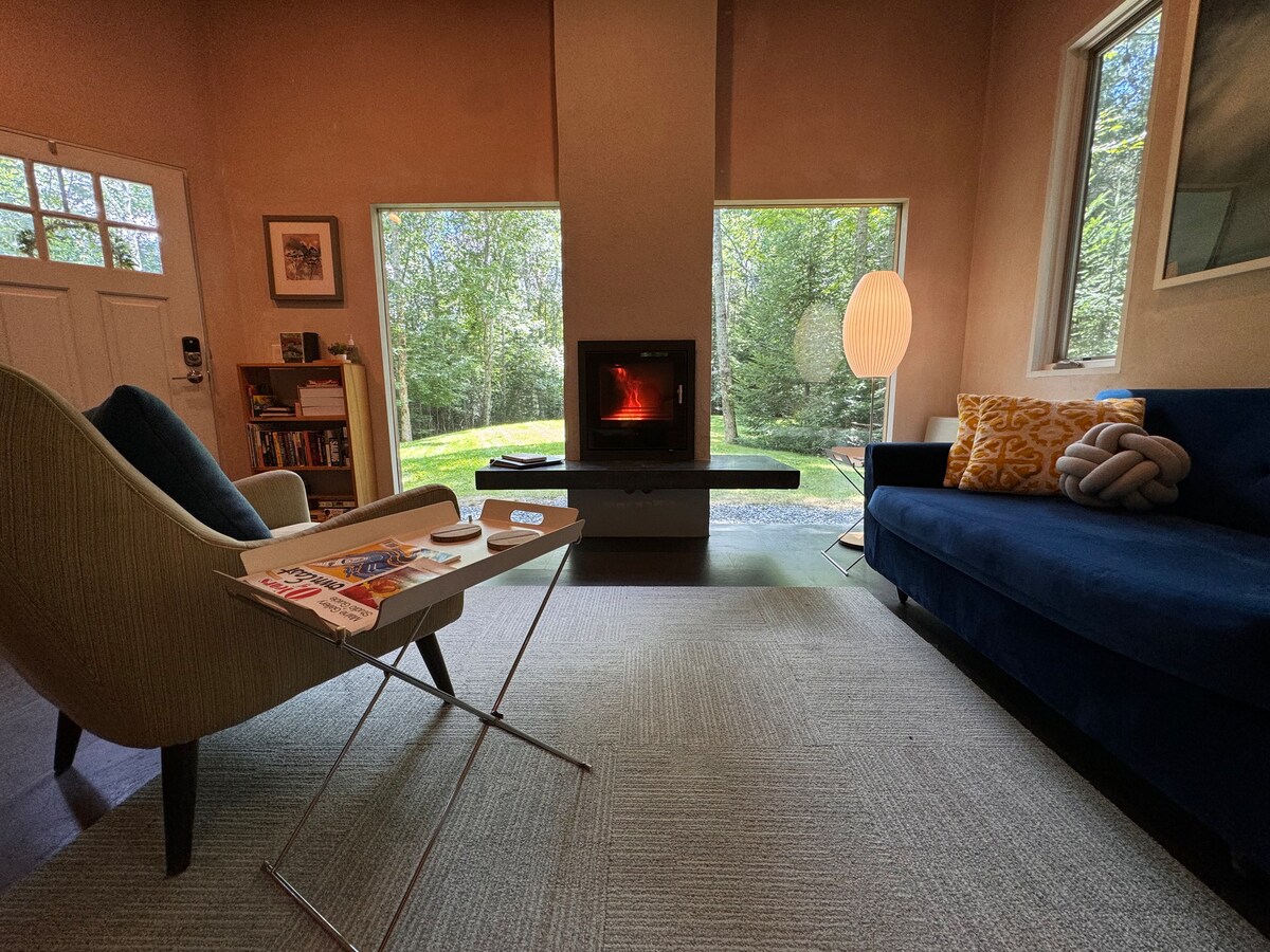 Entspanne dich, tanze auf und fliehe hier. Ein einzigartiges und friedliches Gästehaus im Wald von Lamoine, Maine mit großen Fenstern mit Blick auf den Wald. Nah genug am Bar Harbor / Acadia National Park (45 Minuten), aber abseits des hektischen Treibens. Ein 10-minütiger Spaziergang eine Schotterstraße hinunter zu einem Strand in Lamoine mit Fernblick auf den Acadia National Park. Genieße jedes Wetter mit unserem neuen Holzofenkamin, der von großen Fenstern umgeben ist. Wir haben beim Check-in einen umfassenden Reiseführer für unsere Gäste.