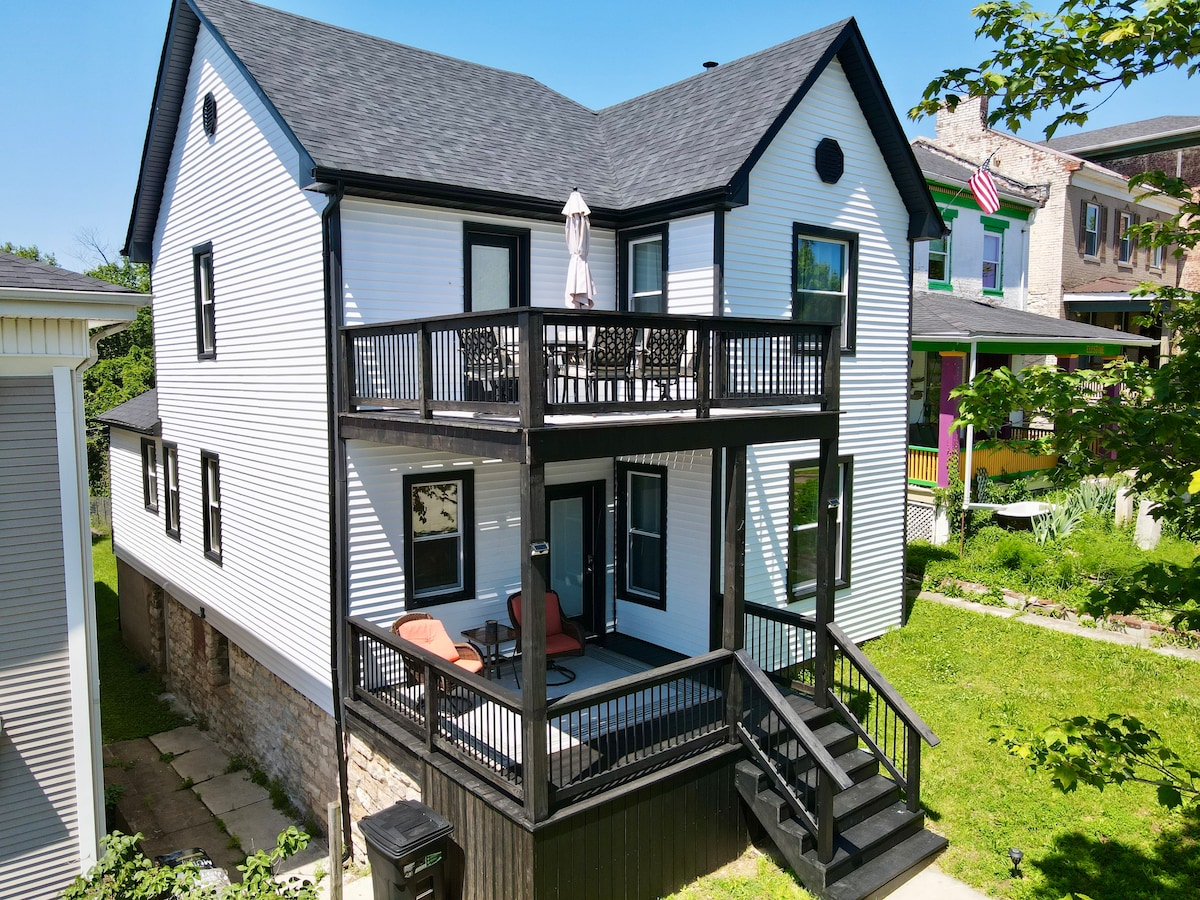 Wache auf und nimm deinen Kaffee mit nach draußen, um dich auf derselben Veranda zu entspannen, die Molly Brown (die „Unsinkable“) genossen hat, als sie ihre Schwester besuchte und den mächtigen Mississippi vorbeiziehen sah. Molly wurde 1844 vom ersten Richter des Territoriums erbaut und war auf dem Weg zu diesem Haus, als die Titanic sank. Genieße die originalen Hartholzböden im Esszimmer, die von der Glut der Feuer geprägt sind, die verwendet wurden, um unzählige Familienmahlzeiten unter dem Kamin zu kochen. Spaziere zu allen Sehenswürdigkeiten, dem Nachtleben und Festivals der Innenstadt.