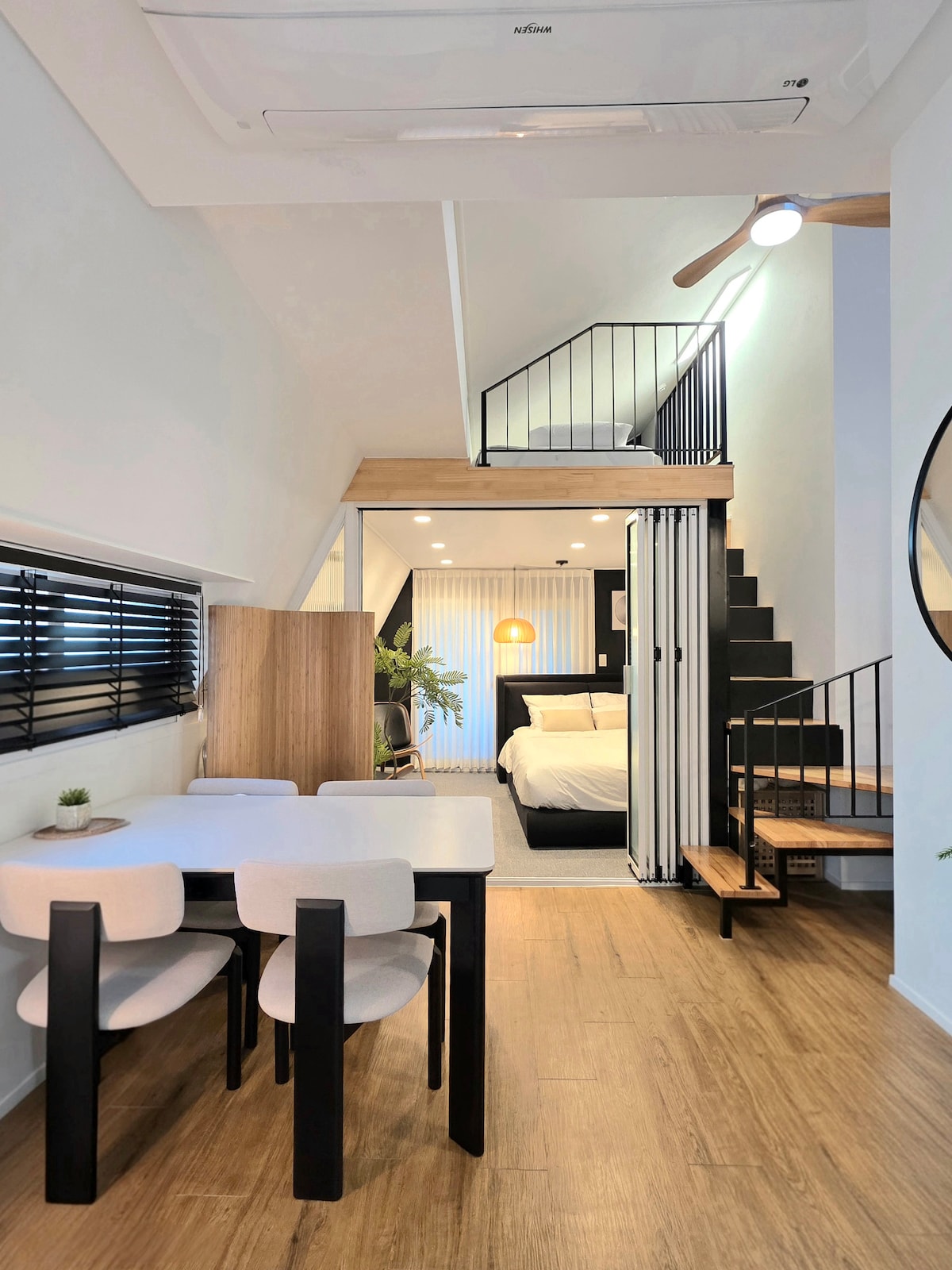 Es ist kompakt, hat aber alles, was du brauchst, und es befindet sich im Zentrum von Seoul, wo sich Trends und Alltag treffen. – Bestes Preis-Leistungs-Verhältnis unter den verfügbaren Unterkünften für bis zu 4 Personen – Bequemer Zugang zu Hongdae (10 Minuten), Mangwon Market (1 Minute) und Hangang Park, zentriert auf Hapjeong Station (8 Minuten zu Fuß) – Erreichbar mit öffentlichen Verkehrsmitteln zu den wichtigsten Sehenswürdigkeiten in Seoul – Es ist auch ein relativ sicherer Ort, um spät in der Nacht zurückzukehren. – Reisende von 2–4 Personen, die einen privateren Raum als ein Hotel wünschen – Diejenigen, die eine saubere und praktische Unterkunft bevorzugen – Ein Raum, der nicht groß, aber komfortabel ist – Ein Zimmer (2 Zimmer, 1 Badezimmer, Küche usw.) absolute Privatsphäre garantiert – Cafés, Restaurants und Lebensmittelgeschäfte sind alle in der Nähe, was es zur besten Basis für eine Reise nach Seoul macht. – Intelligente Unterhaltung – Netflix, YouTube, Disney Plus kostenlos – Hochgeschwindigkeits-WLAN ohne Einschränkungen – Perfekt für Arbeit und Entspannung – Premium-Gänsedaunendecke – Schlaf wie im Hotel garantiert – Komfortable Wohneinrichtungen – Voll ausgestattet mit Waschmaschine