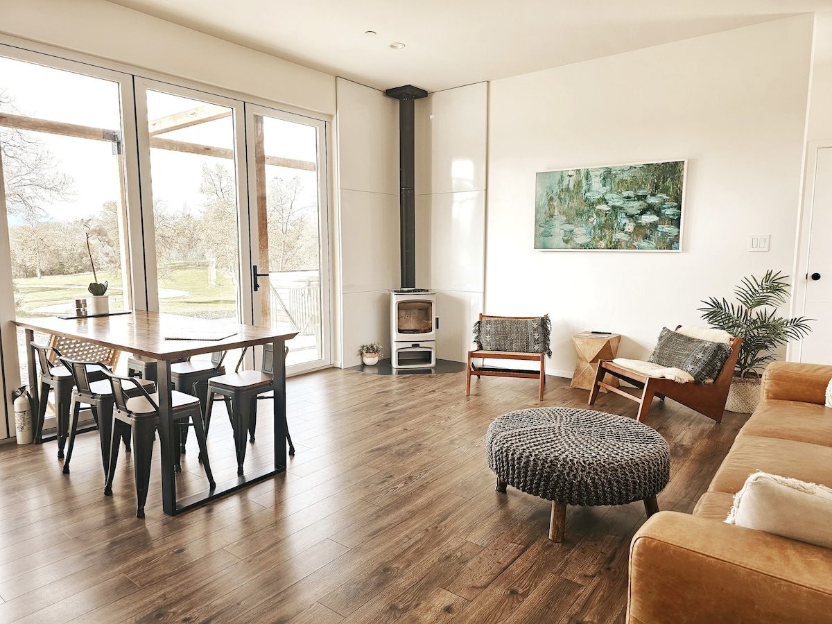Ruhe auf 5 Hektar, 7 Minuten vom Herzen von Redding entfernt. Ein Ort, an dem sich zeitgenössischer europäischer Stil und natürliche Schönheit verbinden, leicht erreichbar über die I5, das Beste aus beiden Welten. Genieße das Wohnen im Innen- und Außenbereich mit Swimmingpool, saisonalem Whirlpool, Außenküche, Grill und Pizzaofen. Genieße deinen Morgenkaffee im Innenhof oder entspanne dich bei Sonnenuntergang auf der überdachten Terrasse am Koi-Teich. Saisonaler Whirlpool Nov–Mar