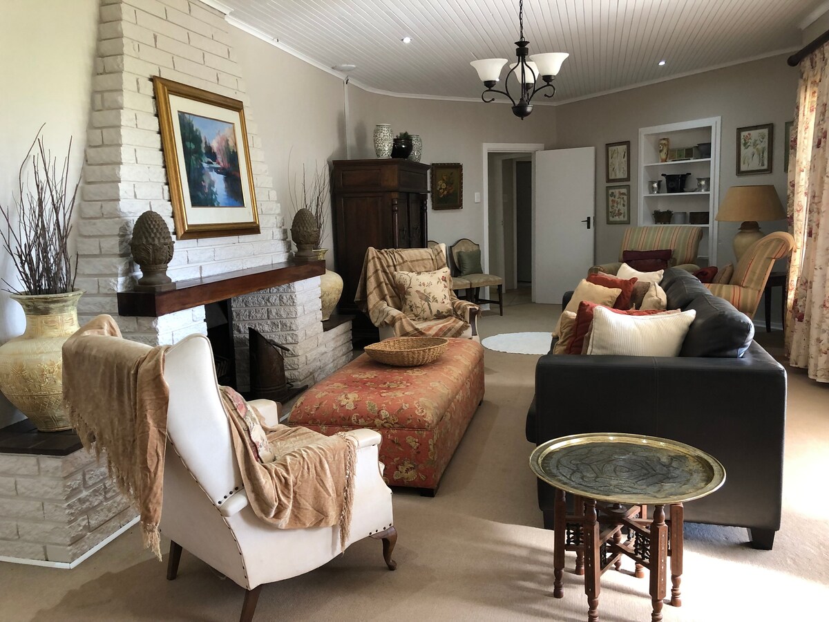 A charming , spacious, house in the secure Gowrie Village in Nottingham Rd. Cosy in winter with a wood burner in the lounge and another in the kitchen. It overlooks a field, is peaceful and quiet and yet close to the coffee shops and eating places. A home away from home we offer comfort. (It is not a modern build, as it is one of the first houses built in Gowrie Village) Kindly note, there are 2 outdoor cats on the property that are only around for food. They won't bother guests Enjoy!
