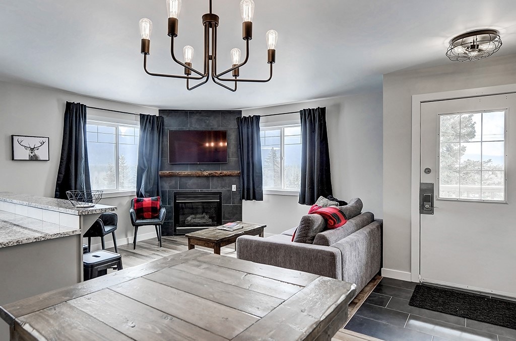 Welcome to this stunning, 1 bed 1 bath property, located in the heart of Canmore, Alberta. Surrounded by the best mountain views in Canmore, this property offers breathtaking views of the Three Sisters, Mount Lawrence Grassi, and the whole Rundle mountain chain. After a long day, come home to soak in one of the outdoor hot tubs, relax in front of the electric fireplace or sit on our sunny balcony and enjoy the view.
