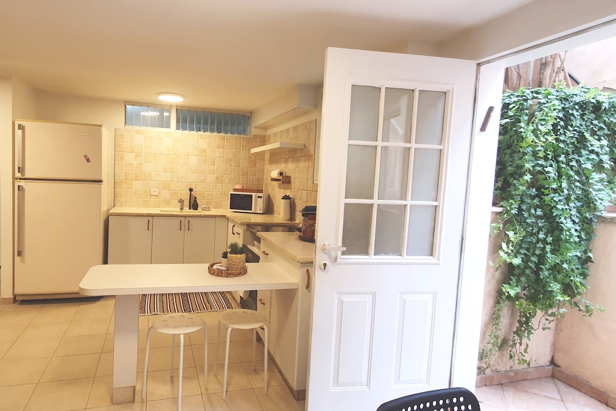 Willkommen in Diskinland! Bringen Sie die ganze Familie in unsere gut ausgestattete süße Wohnung mit Vorgarten, in einem sehr friedlichen Moshav. Nur 20 km von Tel-Aviv und wunderschönen Stränden. 5 Minuten von Ra'anana und Kfar Saba.