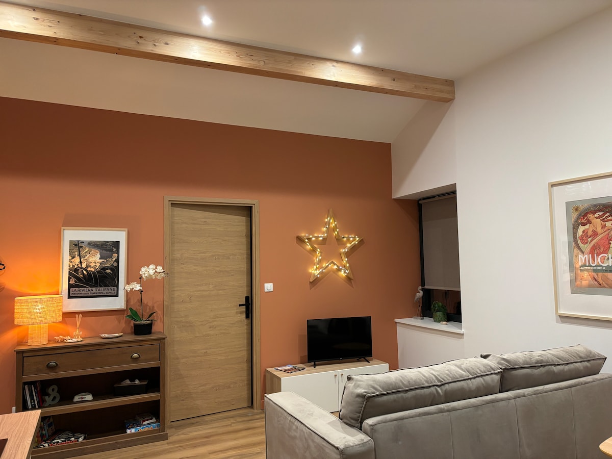 Un logement de 35 m2 élégant en centre-ville d'Yssingeaux, proche des restaurants, du théâtre, du cinéma, des commerces. A 10 mn à pied de l'école Ducasse. Wifi. Linge de lit et de toilettes fournis. Petit frigidaire, four, micro ondes, plaques induction, cafetière, théière, grille pain, vaisselle, machine à laver, penderie, commode, télévision, fer à repasser, aspirateur, jeux... Equipements neufs. Dans immeuble de caractère. Parking gratuit à proximité.