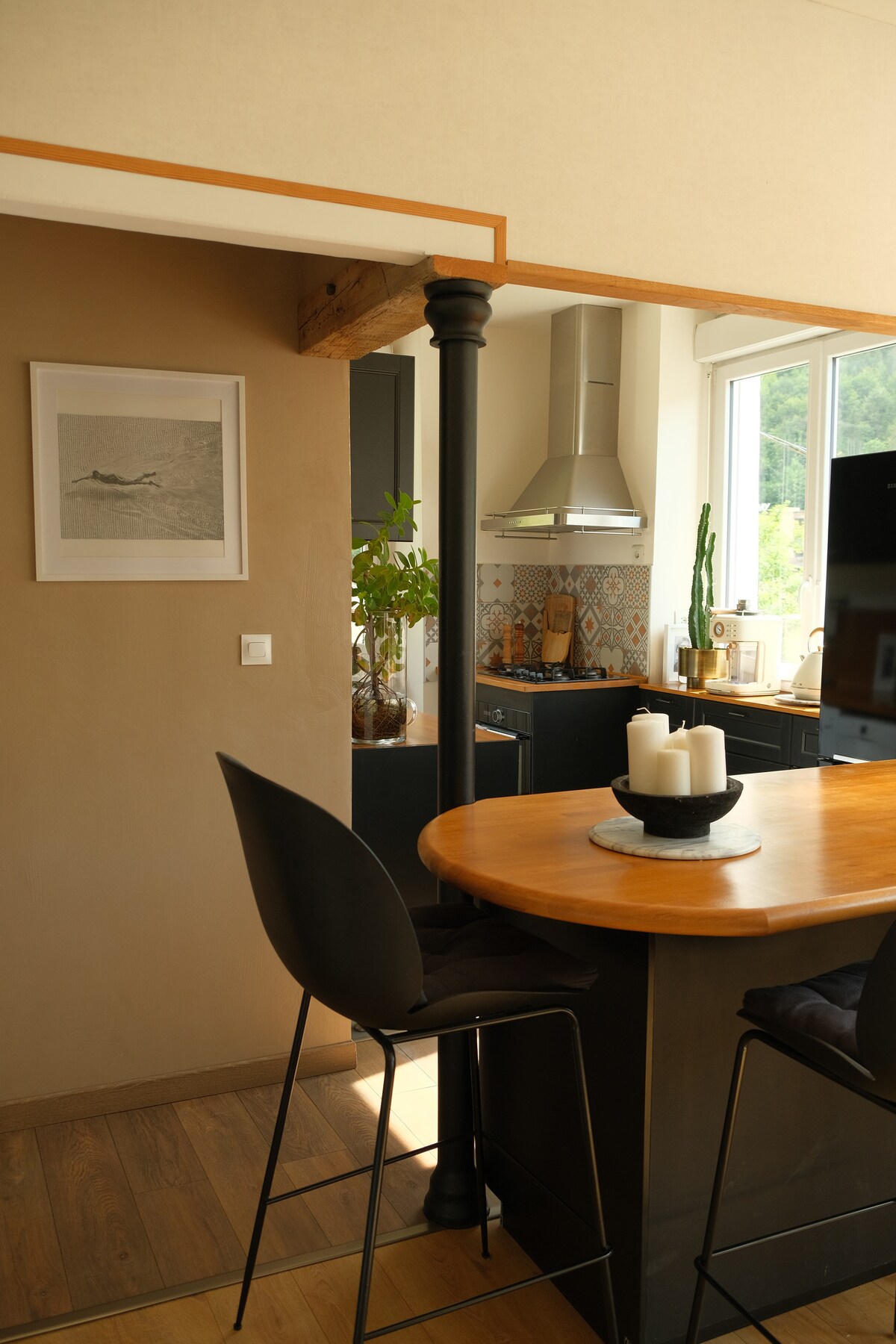 Machen Sie eine Pause und entspannen Sie sich in dieser warmen und hellen Wohnung mit Blick auf die Tannen und den Fluss. Das Hotel liegt im Haut-Jura, in der Nähe der Skigebiete (Les Rousses, Bellefontaine, Morbier...) und der Schweiz, wohnen Sie in einer alten Brille. Unsere Wohnung verfügt über einen langen Balkon, ein Wohn-Esszimmer, eine Küche, ein Schlafzimmer mit Doppelbett von 150x190cm und ein großes Duschbad. Ideal für Aufenthalt und Arbeit.