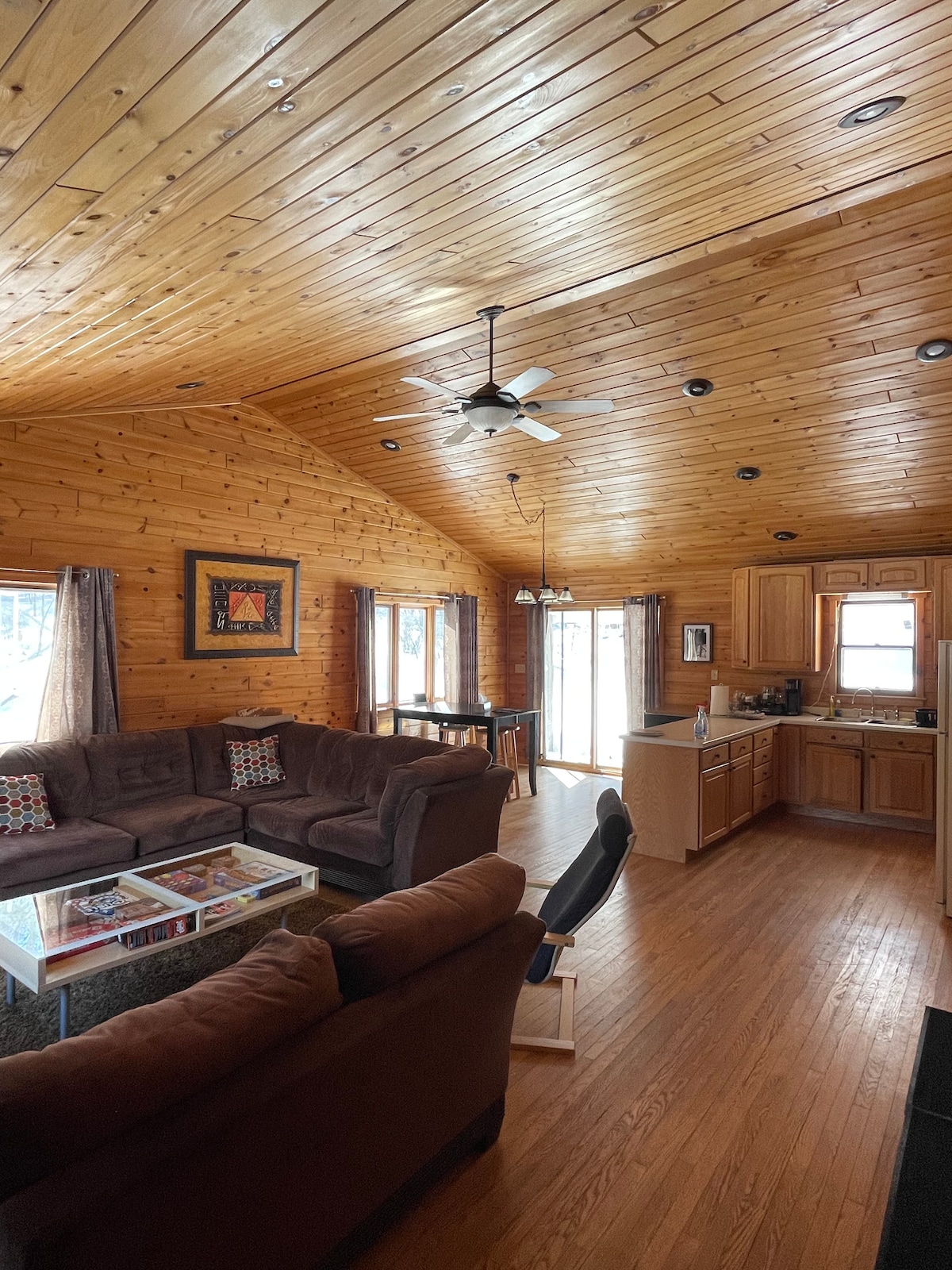 Diese schöne Hütte mit vier Jahreszeiten wurde als Winter- oder Sommerurlaub für ein Paar oder eine kleine Gruppe erbaut und ist eine großartige Möglichkeit, die Northwoods von Wisconsin in einem modernen, gut ausgestatteten, ästhetisch reichen Raum zu erleben, der mit Blick auf Entspannung gestaltet wurde. Diese Hütte wurde im Jahr 2021 gebaut und der Gastgeber ist 13 Jahre „Superhost“ Dies ist eine Standard-Hütte „Keine Haustiere“, aber Ausnahmen können mit Erlaubnis und gegen eine Gebühr gemacht werden. Erkundige dich beim Gastgeber. NEMA 15-40R-Steckdose für das Aufladen von Elektrofahrzeugen auf Stufe 2 vorhanden. Du bringst Akkord und Adapter mit.